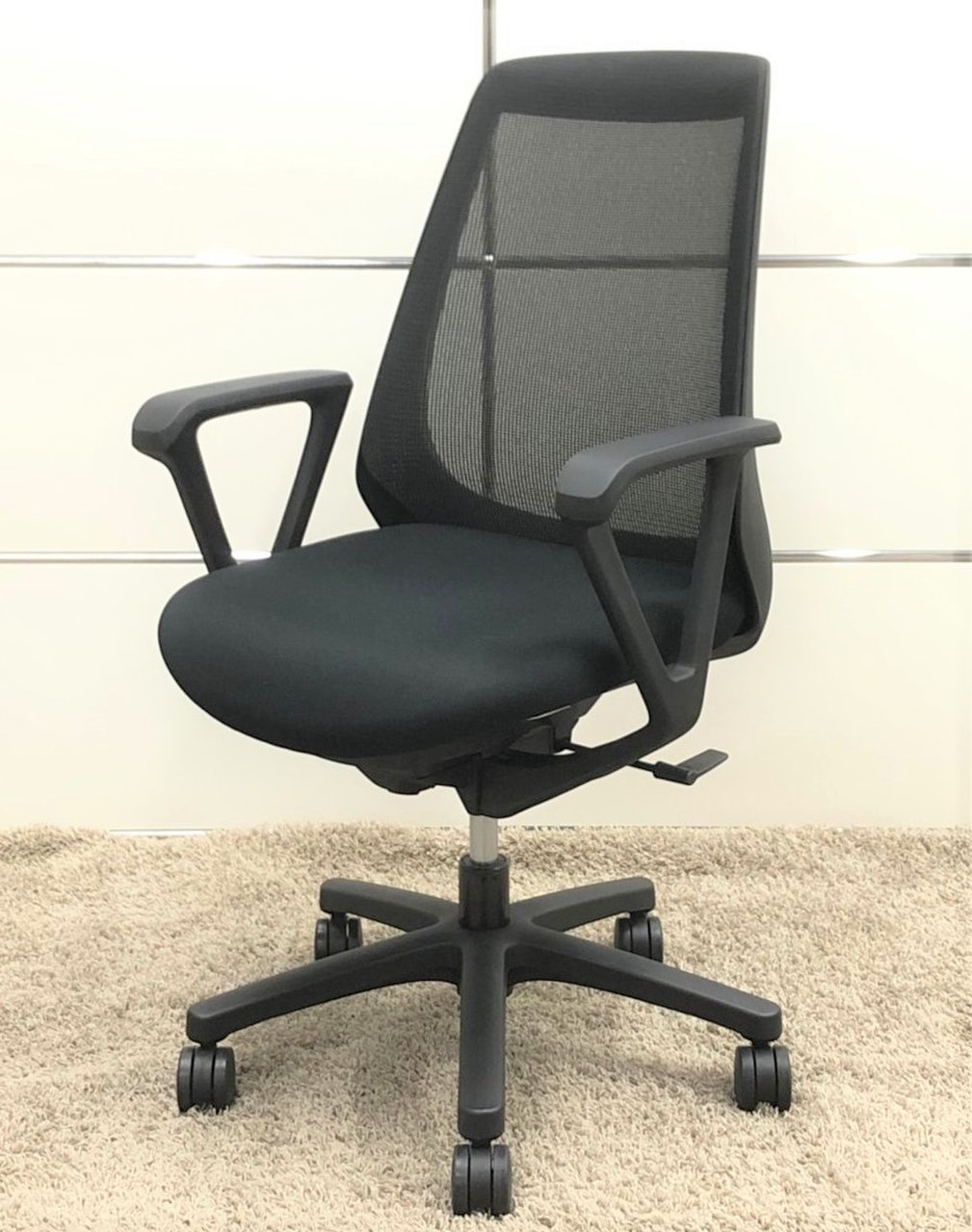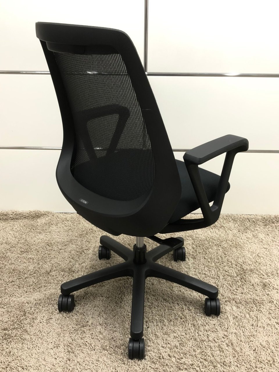 【KS】【長く座っても疲れにくい!腰部を支えるホールド感!】■イトーキ製 ノナチェア 肘付 ブラック ■デスクに納まりの良いコンパクト設計!在宅ワーク用にもオススメ!- 茨城南店