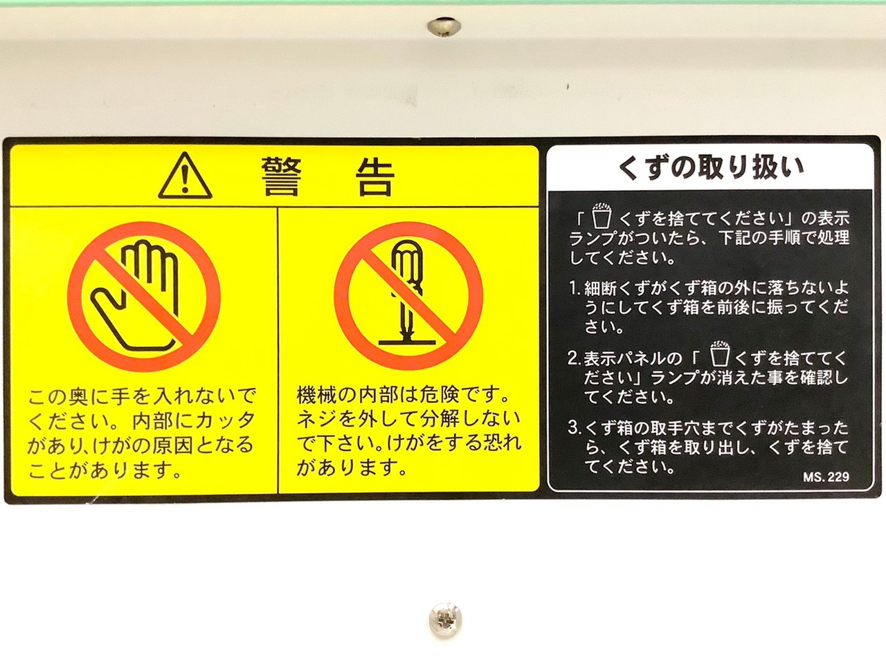 ◆最大細断枚数(50/60Hz):15枚/13枚*A4PPC(64g/㎡)