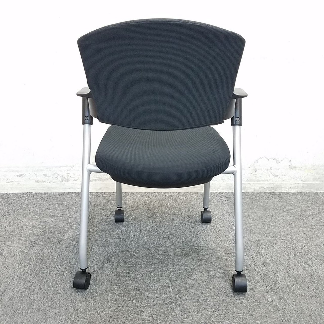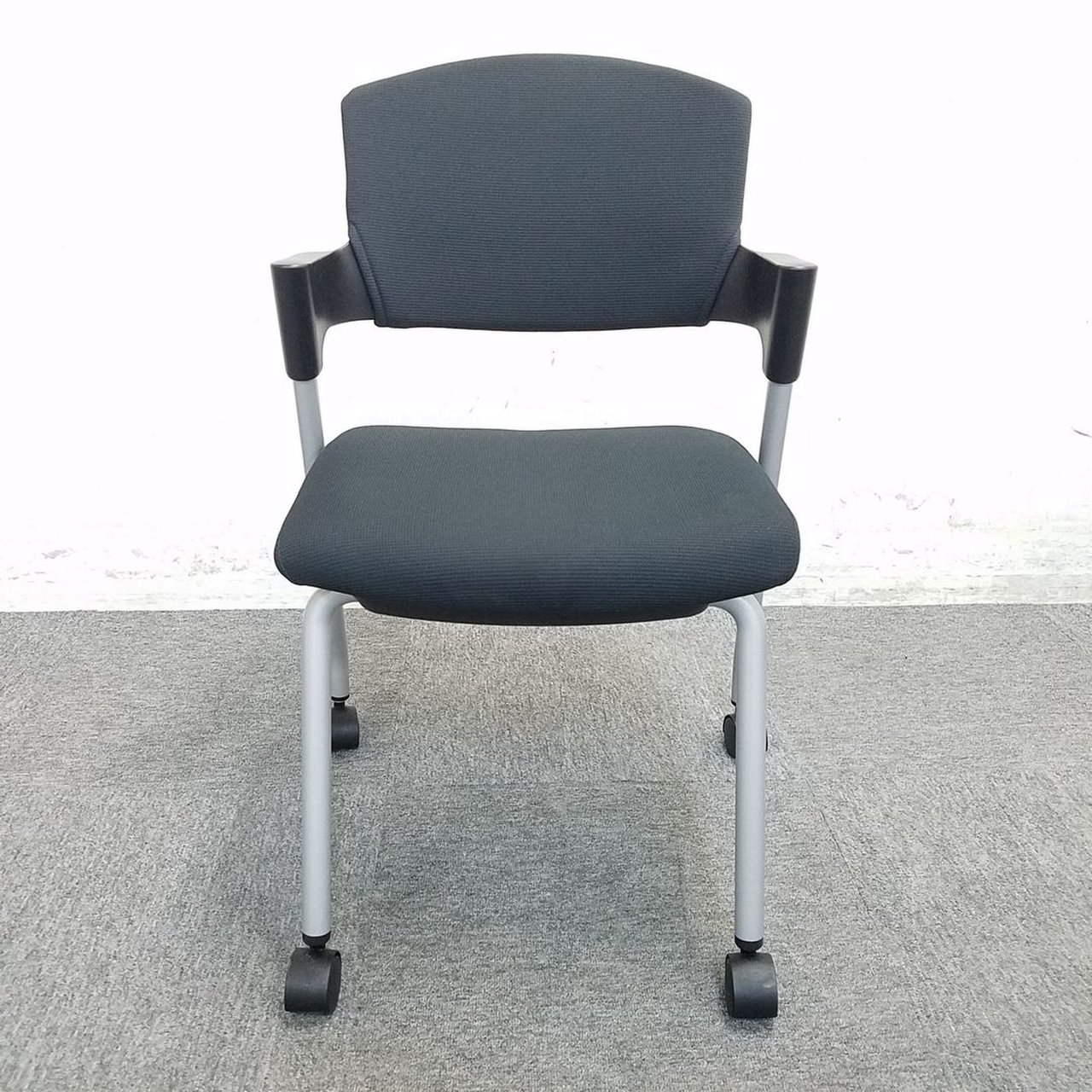 【シンプルスマートなスタッキングチェア!分厚いクッションで長時間でも快適な座り心地!】■スタッキングチェア 肘付ミーティングチェア ■固定肘 ■キャスター付 ■ブラック ■背面樹脂/コクヨ(KOKUYO/プロッティ