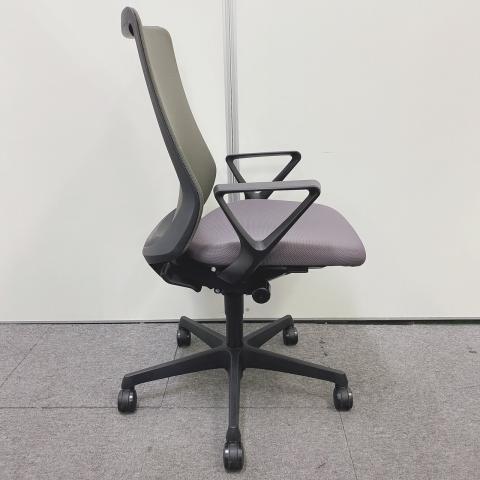 【在庫入替セール品】【背中を立体的に包み込む!流れるような滑らかなデザインが人気!】■オカムラ(okamura)製 フルーエントチェア(Fluent) 肘付き ハイバック 背面メッシュ ■可動肘付 ■ミディアムグレー 【弊社使用欄:A01031965 K】