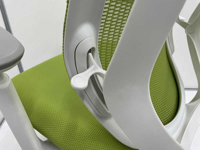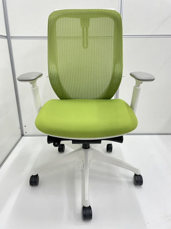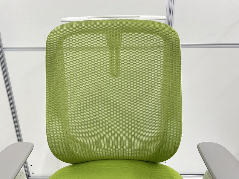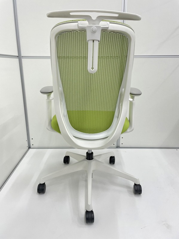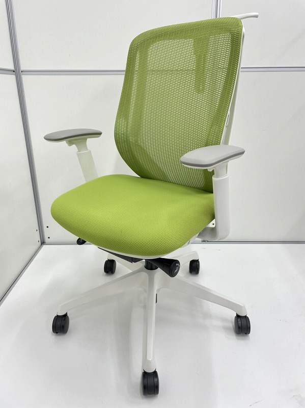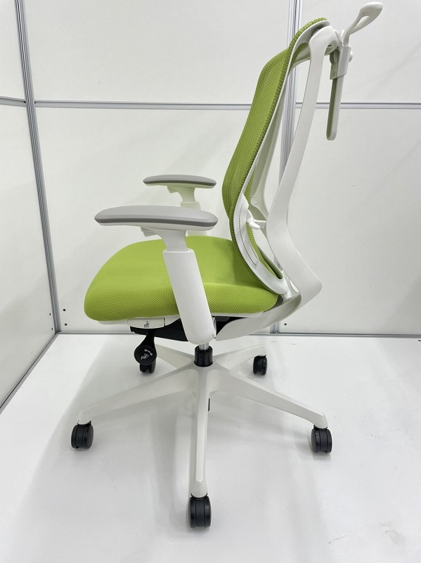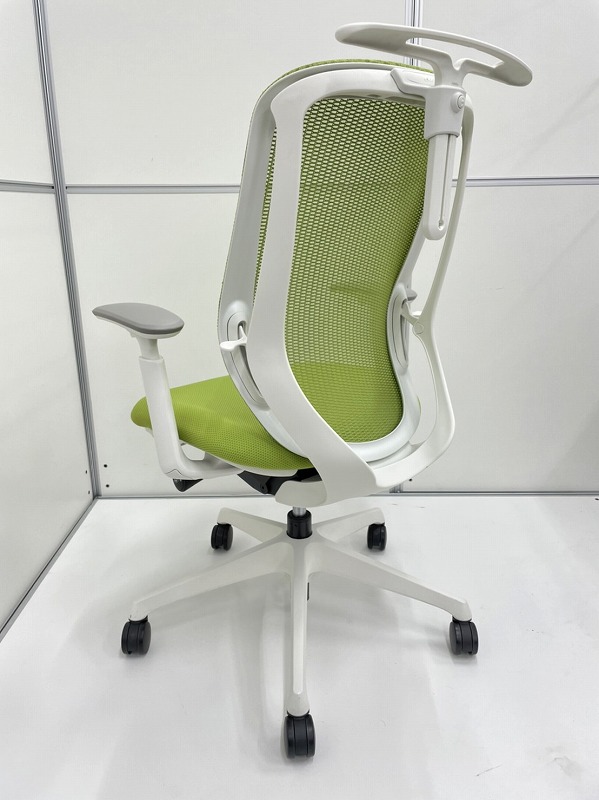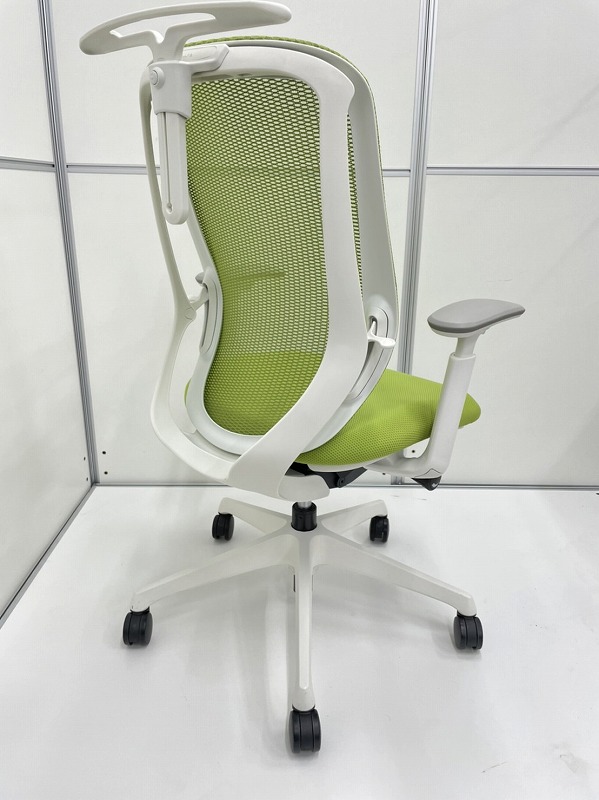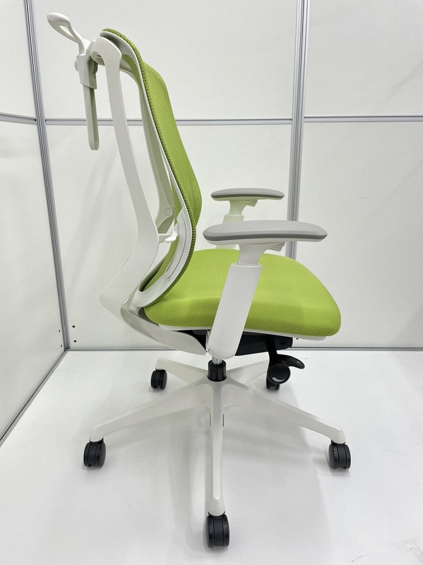 【在庫入替セール品】【人気のシルフィチェアヘッドレスト付きが1脚限定入荷!】オカムラ シルフィ ライムグリーン エクストラハイバック ホワイトフレーム デザインアーム(固定肘) 前傾チルト機能付き