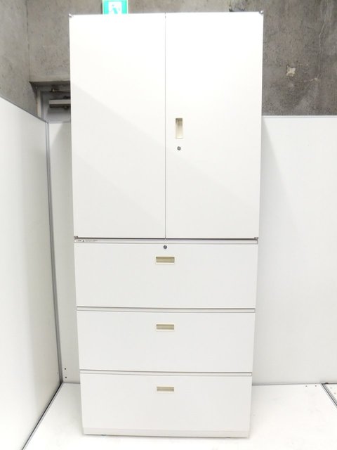 【大量収納】イトーキ製 シンライン 上下書庫セット(上:両開き 下:3段ラテラル)- 足立・葛飾店