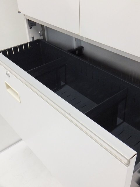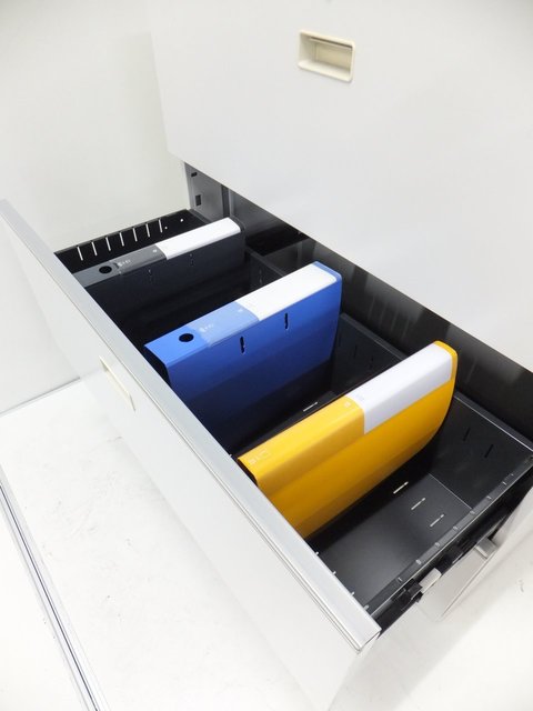 下置きは引き出しタイプになっておりA4ファイル等をすべての段に収納できます