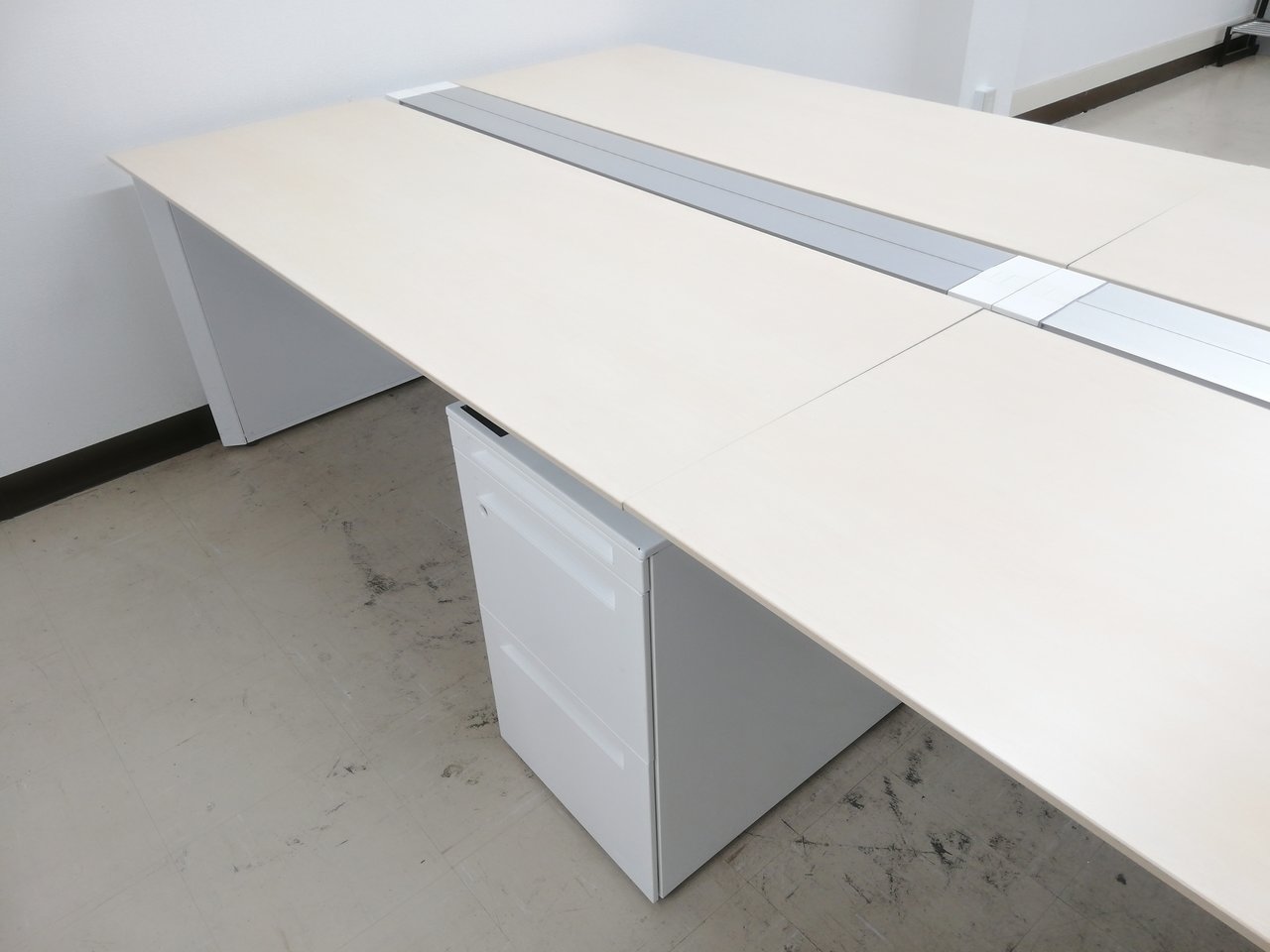 【倉庫在庫品】■4名用デスク■組立簡単!搬入もラクラク■コクヨワークヴィスタ■ナチュラル×ホワイト W3200×D1400 オフィスバスターズ 梅田本店