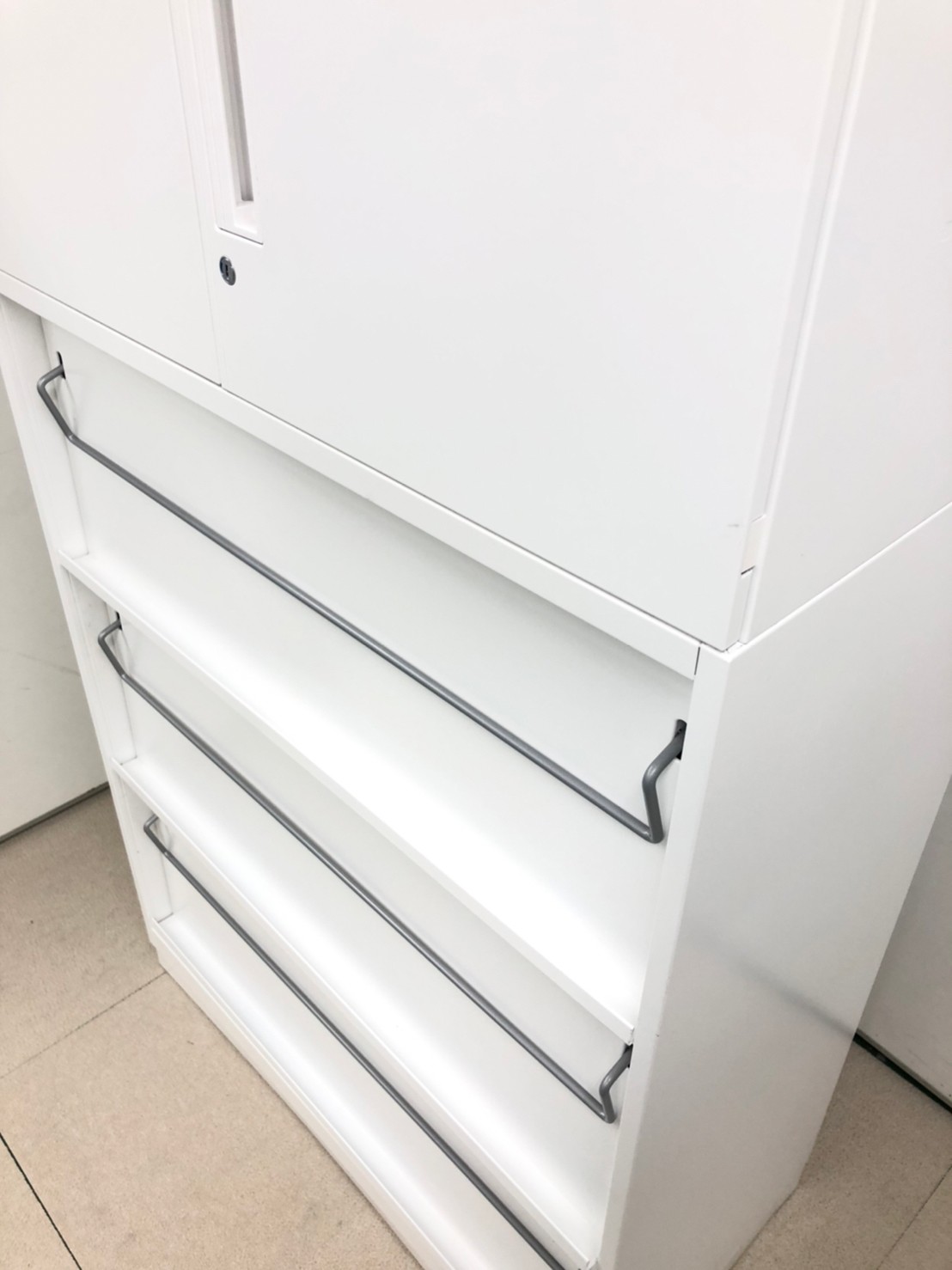 【書類の小分けに便利なクリスタルトレーと両開きタイプのコンビ!】■コクヨ製 エディア 上下書庫セット(上:両開き 下:クリスタルトレー)ホワイト 《オフィスバスターズ福岡博多店は、福岡を拠点として、日本全国へ中古オフィス用品・オフィス家具を提供しております》