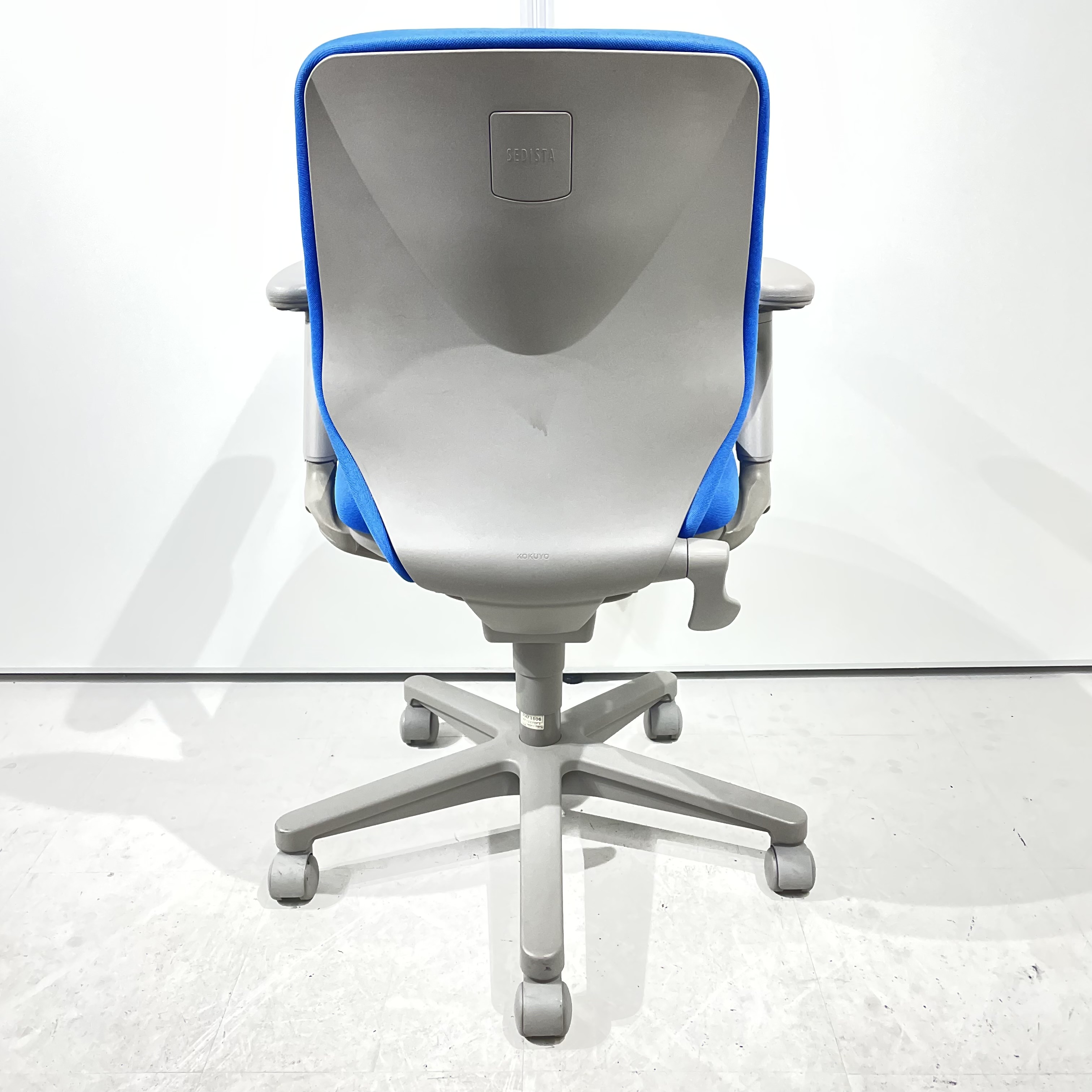 【A01002075】【体にフィットするダブルクッション構造!快適さと集中力をキープ!】■コクヨ(KOKUYO)製 セディスタチェア(SEDISTA) 肘付き ローバック ■ブルー ■サークル肘【IB】
