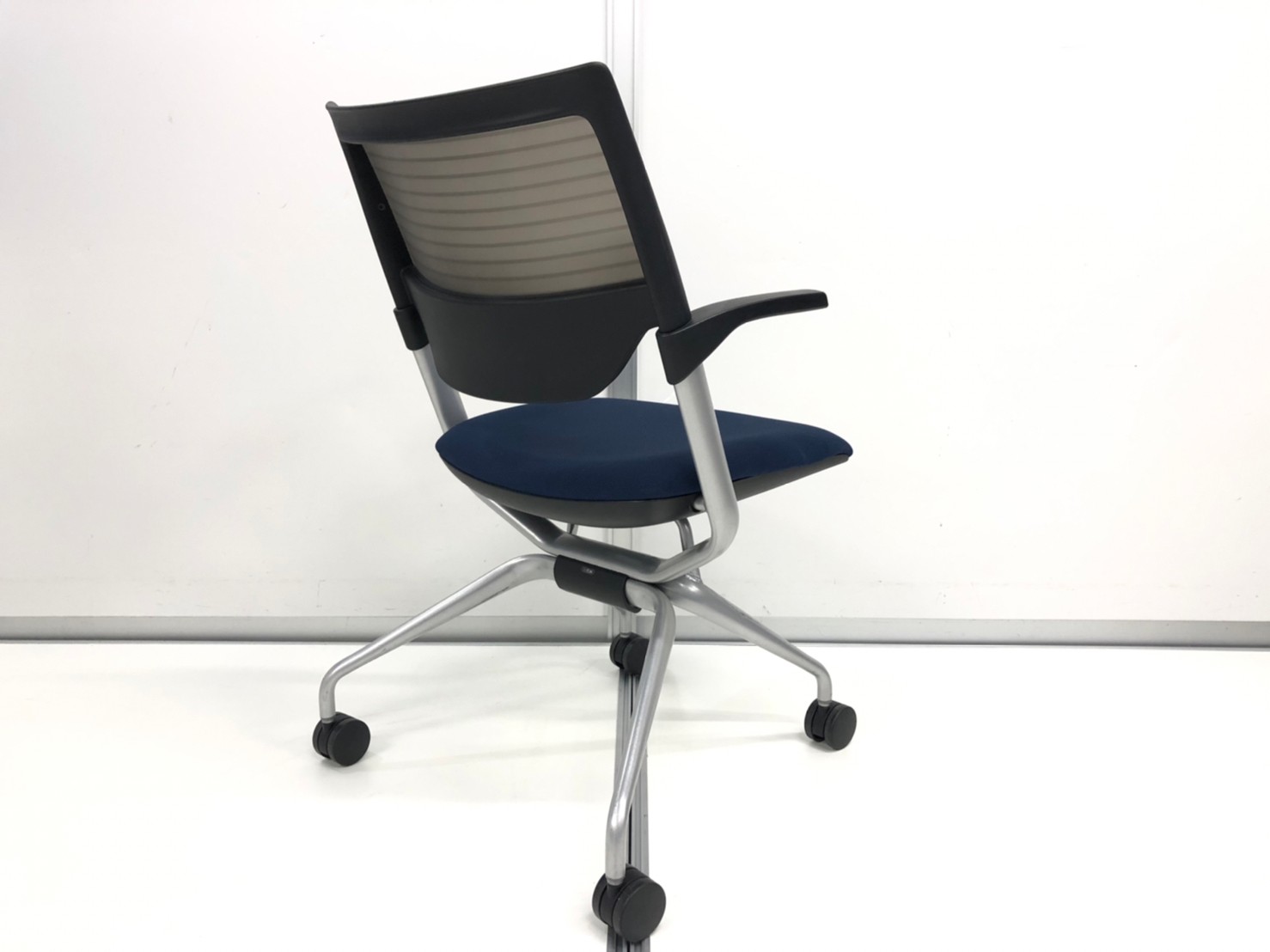 イトーキ製のレクシブチェアが入荷!中古 ネスティング ミーティング キャスター付き 収納 エラストラマーバック ネイビーブルー【T10】