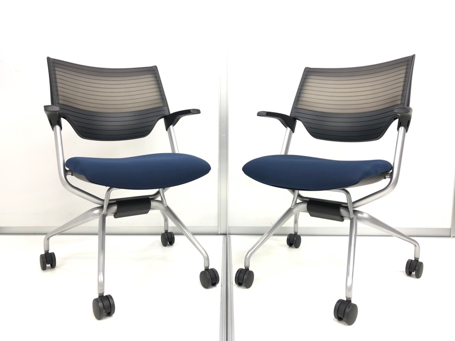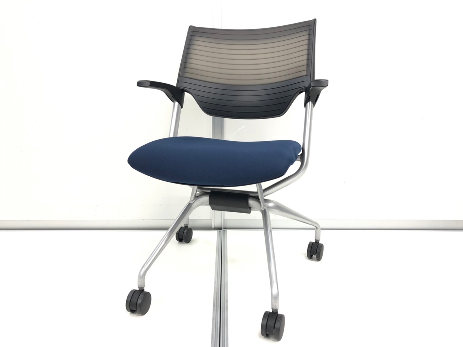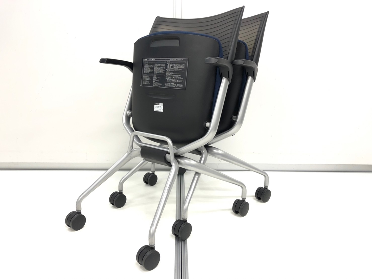 イトーキ製のレクシブチェアが入荷!中古 ネスティング ミーティング キャスター付き 収納 エラストラマーバック ネイビーブルー【T10】