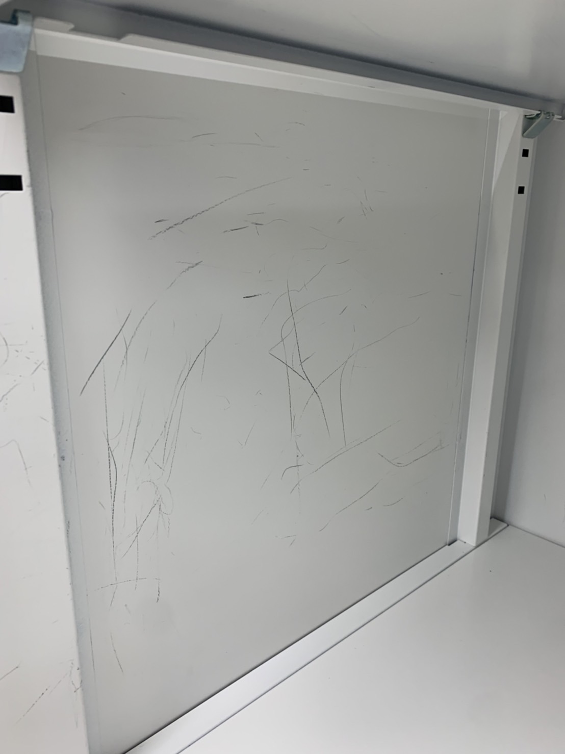 - 目立つ箇所あり傷・凹みが多数、深い傷・凹みが一部ある。(例、天板、正面、背部、サイド部分にある。)