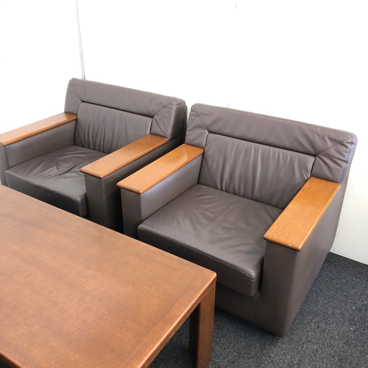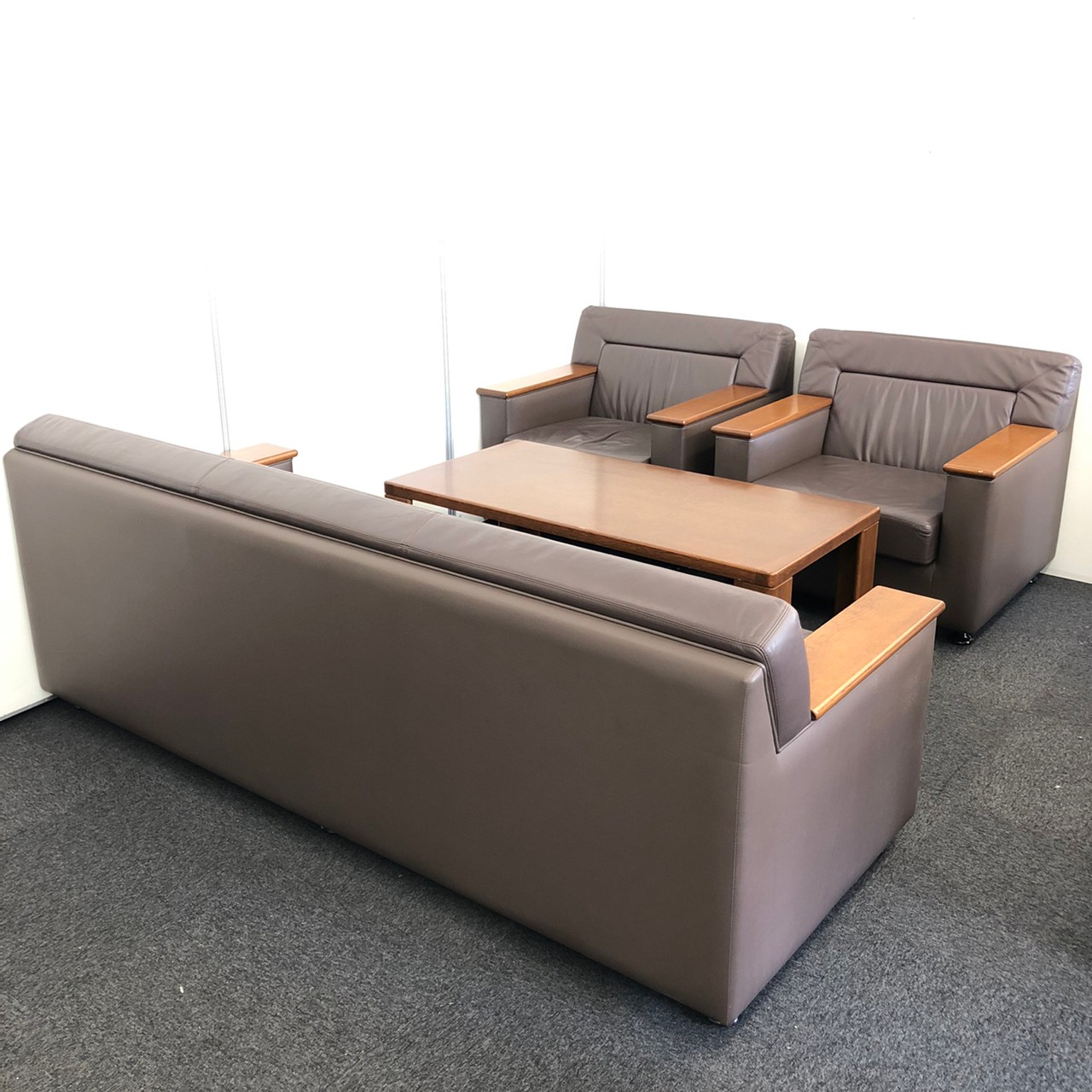 応接セット|イトーキ製|革張り|ブラウン色|3P*1 1P*2 テーブル|オフィスバスターズ尼崎店- 豊中・尼崎店