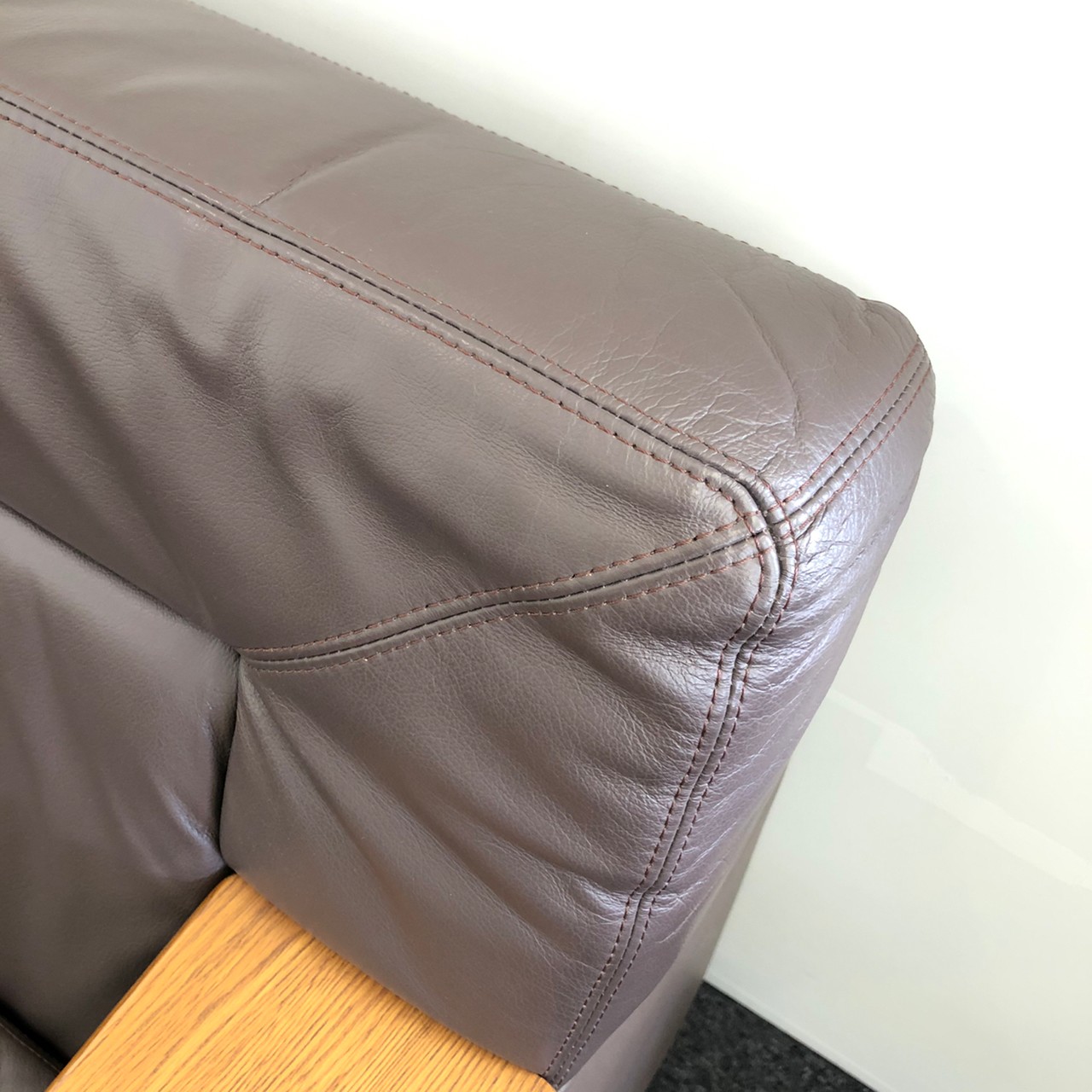 - あり黄ばみ・変色が広い範囲にうっすらある、または濃い黄ばみ・変色が一部ある。(例:三人用ソファ、二人用ソファ、一人用ソファの場合、背もたれ、肘かけ、座面等、 センターテーブルの場合、天板、脚にある。)
