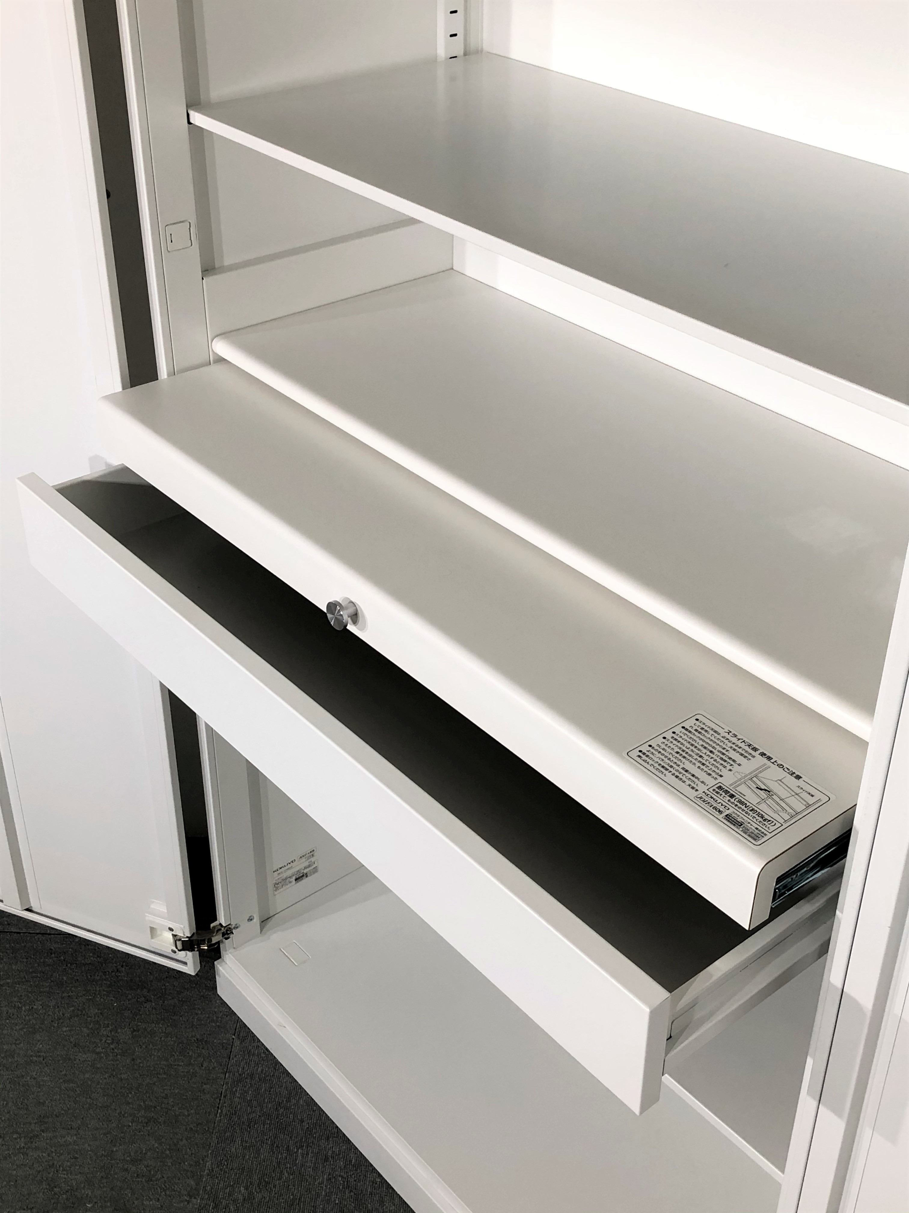 - 一部不具合ありそ引出の開閉不可、施錠不可、棚板無しといったの書庫の本来の効用を果たすための機能以外の一部が使用不可(例、扉、引出の開閉がしづらいなどがある。 )