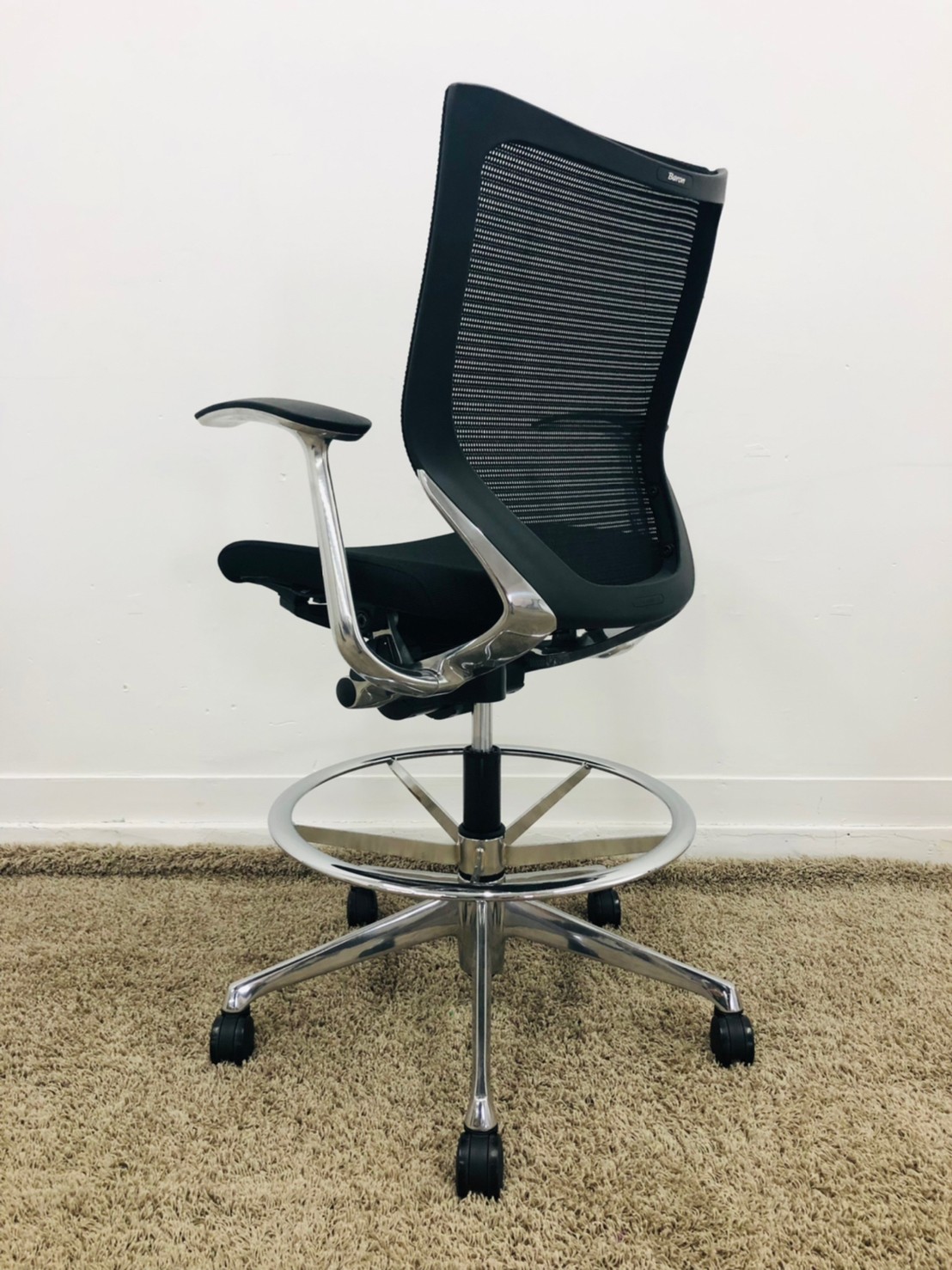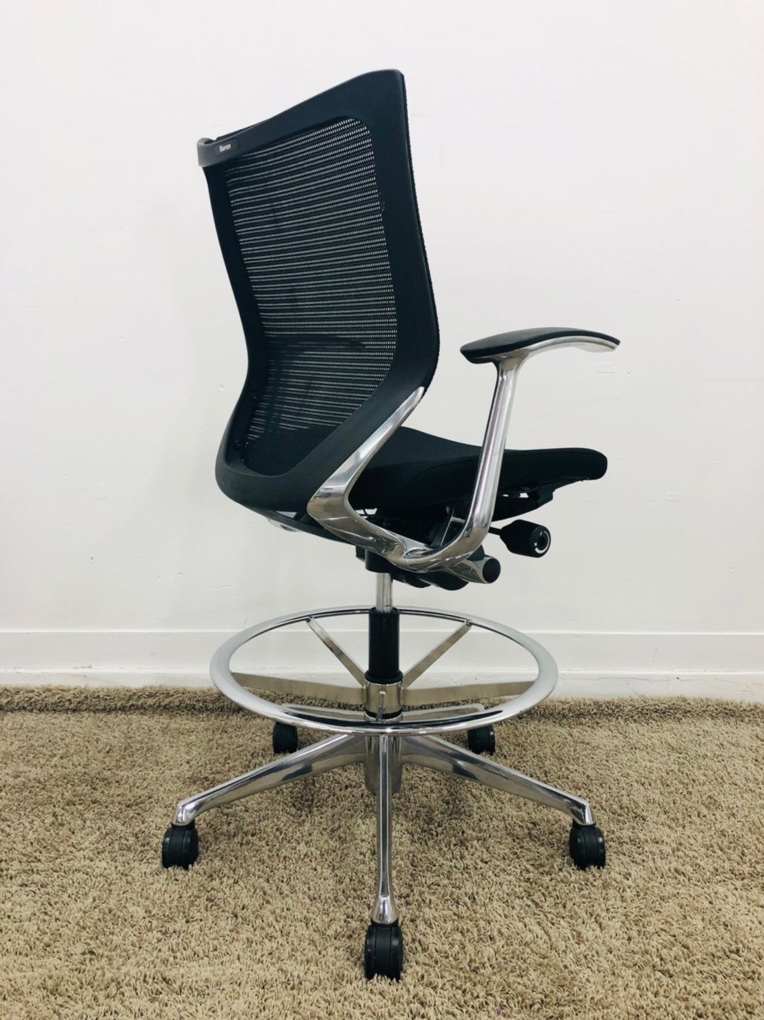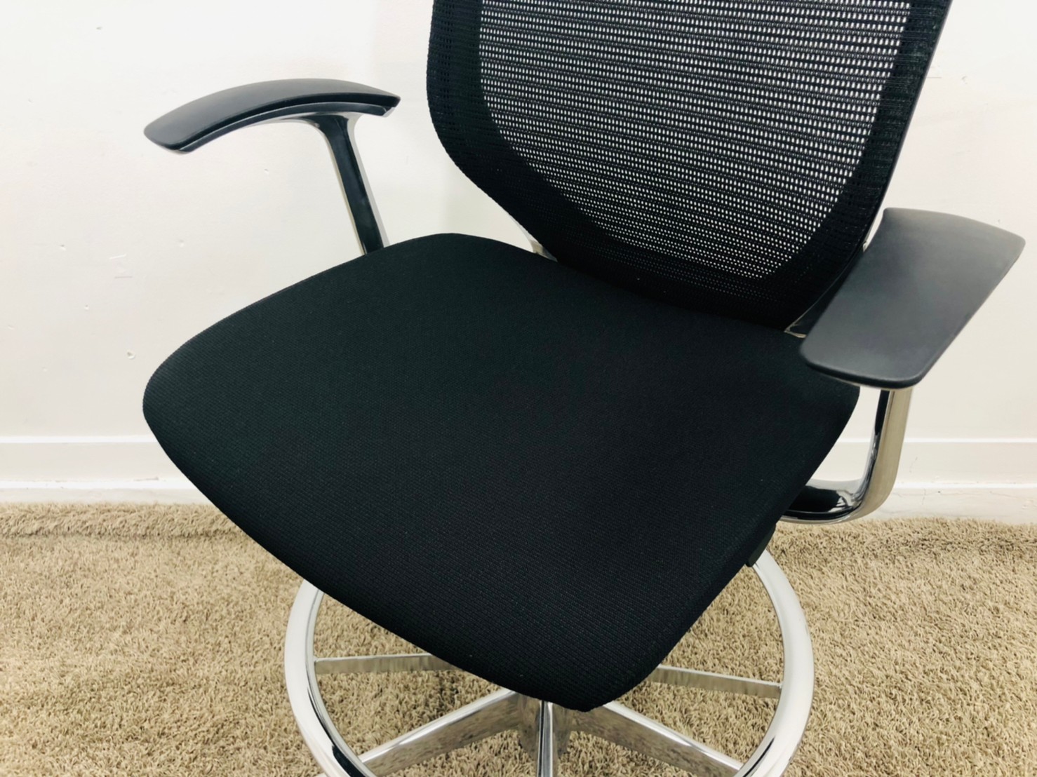 【KS】【ハイチェアタイプ入荷!】■オカムラ製 バロンチェア デザインアーム付 ブラック ■上下昇降デスクとの使用にもオススメ!【おつとめ特価!】- 茨城南店