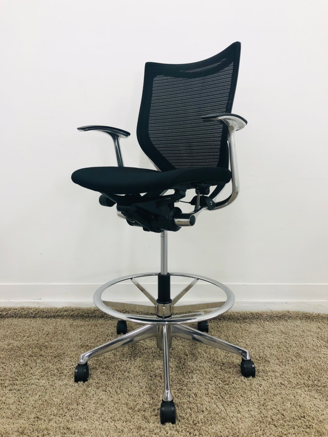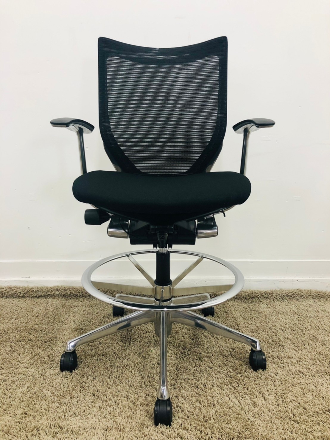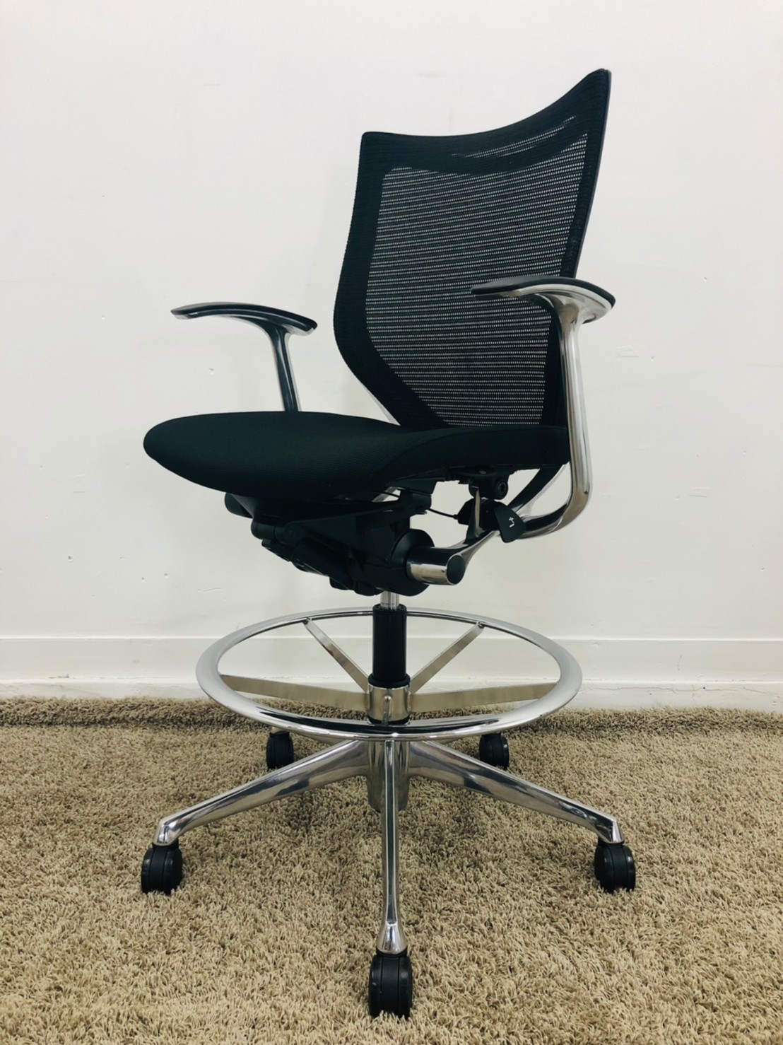 【KS】【ハイチェアタイプ入荷!】■オカムラ製 バロンチェア デザインアーム付 ブラック ■上下昇降デスクとの使用にもオススメ!【おつとめ特価!】- 茨城南店