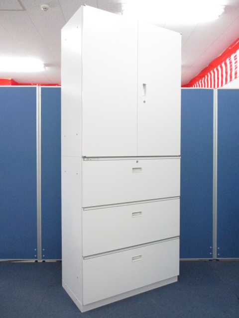 【壁面収納で迷ったらコレ!】■イトーキ製 上下書庫セット(両開き&3段ラテラル)ホワイト ■豊富な収納スペース!品質安心の国産ブランド!- 川崎店