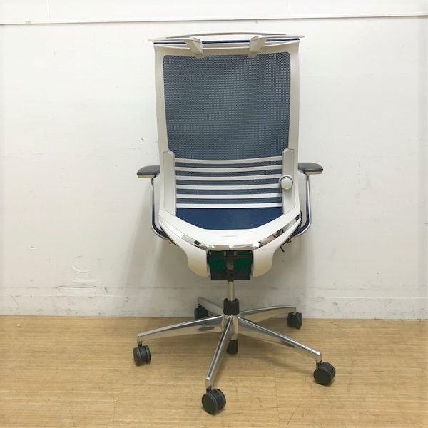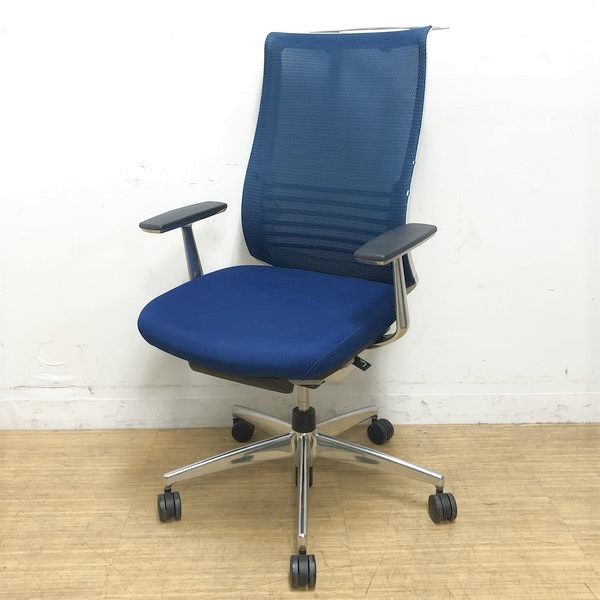 腰に優しいチェア入荷!中古 高級チェア オフィスチェア メッシュ ブルー おしゃれ テレワーク 前傾姿勢 前傾チルト ハイバック ランバーサポート