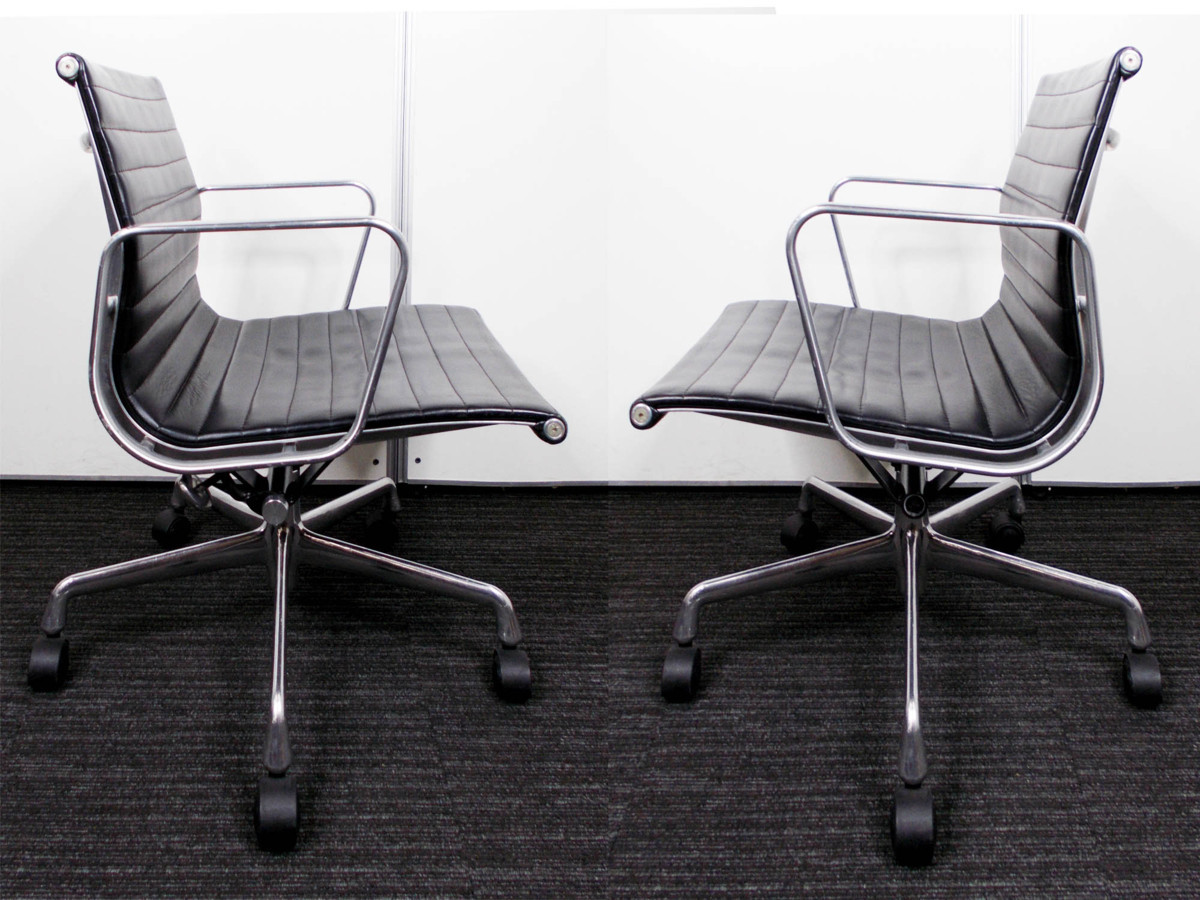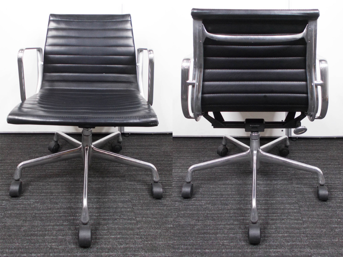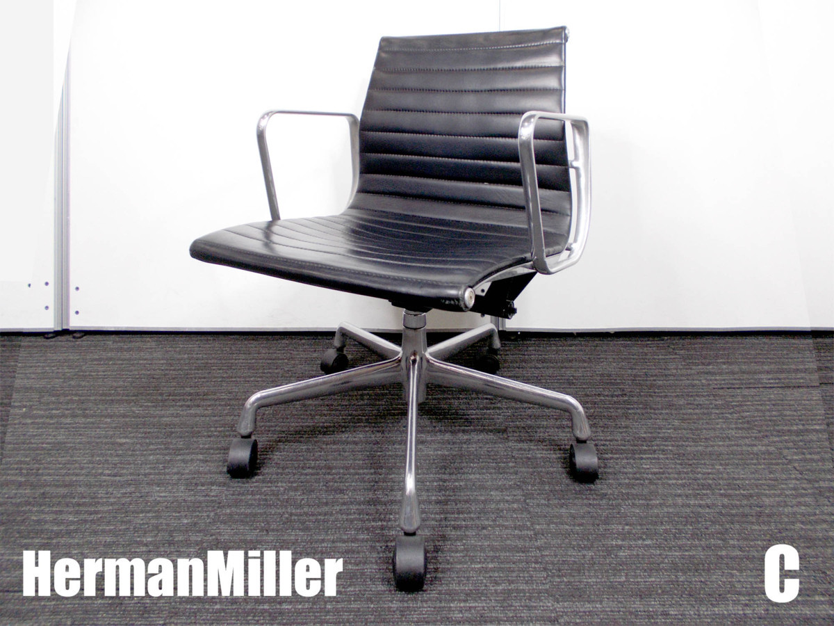 C)HermanMiller/ハーマンミラー イームズ アルミナムチェア ローバック ブラック 本革在庫がある店舗一覧
