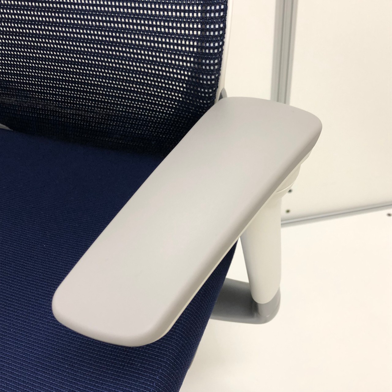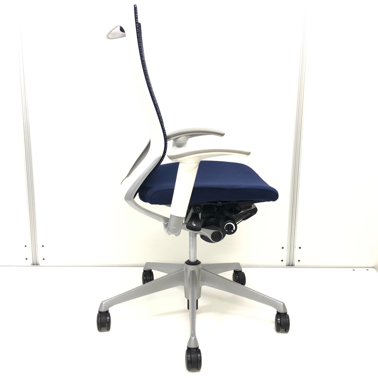 【新品ヘッドレスト付き】オカムラ/バロン/ブルー×ホワイト/可動肘/座面クッション【AD】