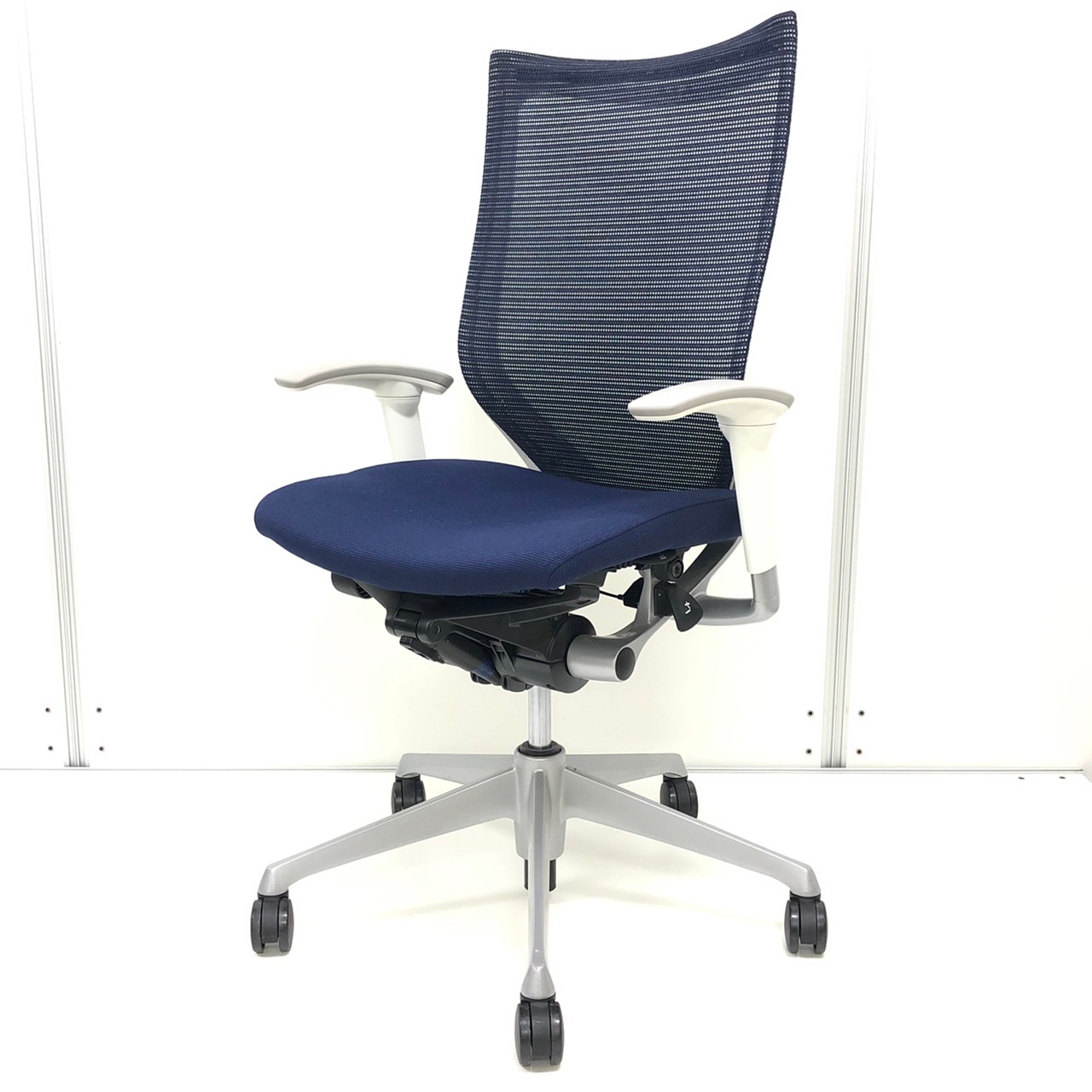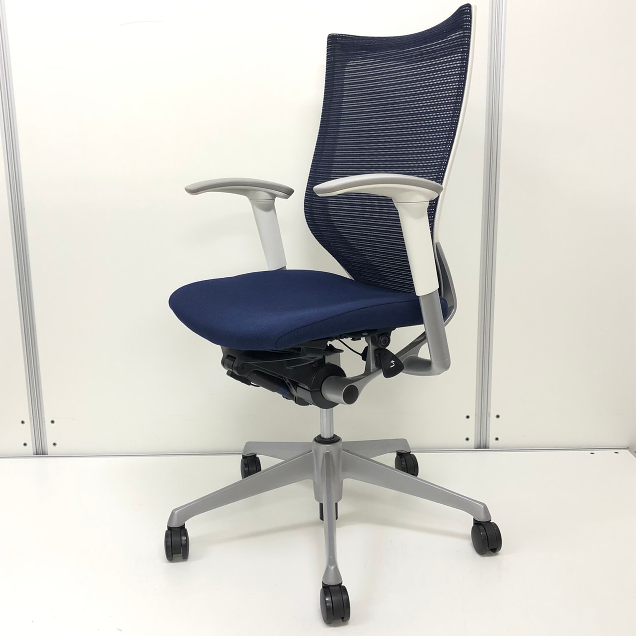 衰えしらずの高品質な大人気チェア!清潔感と爽快さを感じさせるブルー×ホワイト仕様! ■オカムラ/バロン/ダークブルー【AD】