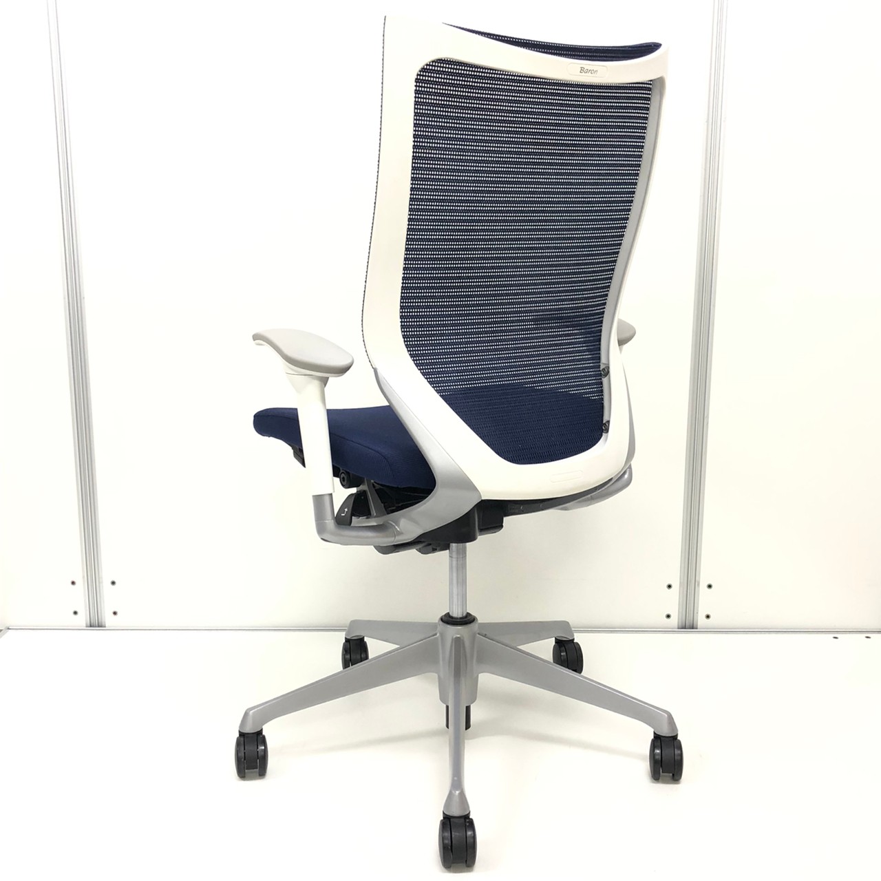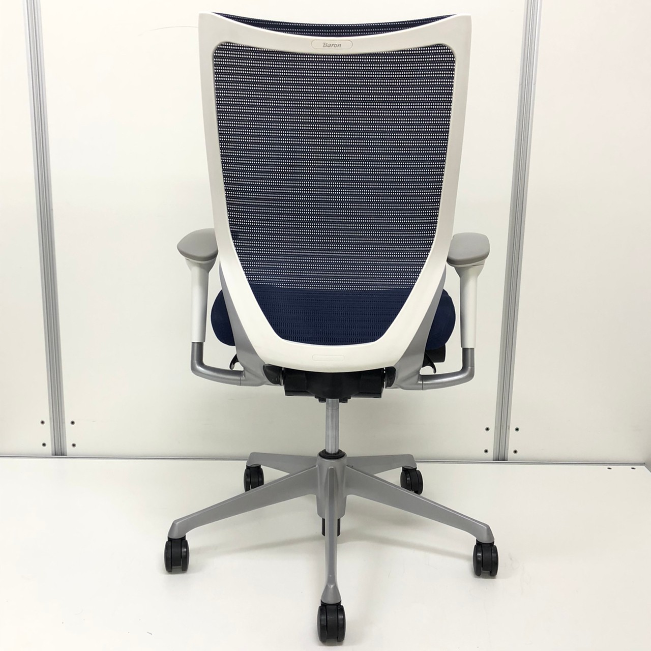 【オフィスの執務室、会議室におすすめ!】■オカムラ(okamura)製 バロン(Baron)チェア 肘付き ハイバック 背面メッシュ ■可動肘 ■ダークブルー × ホワイトシェル【硬めの座面が大人気!国産メッシュチェアの代表格!】【状態良好品!】
