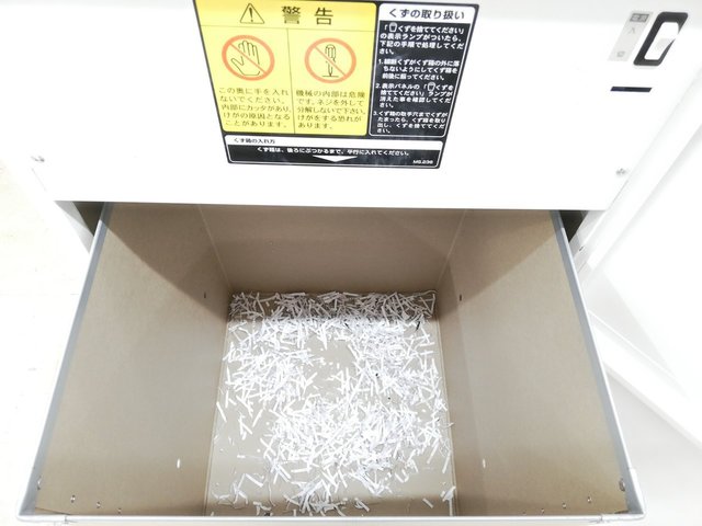 | そのほか機能 | ・細断可能物:紙類、CD/DVD、FD、MO、クリップ(28ミリ以内)、ホッチキス(NO.10以下)、カード類 |