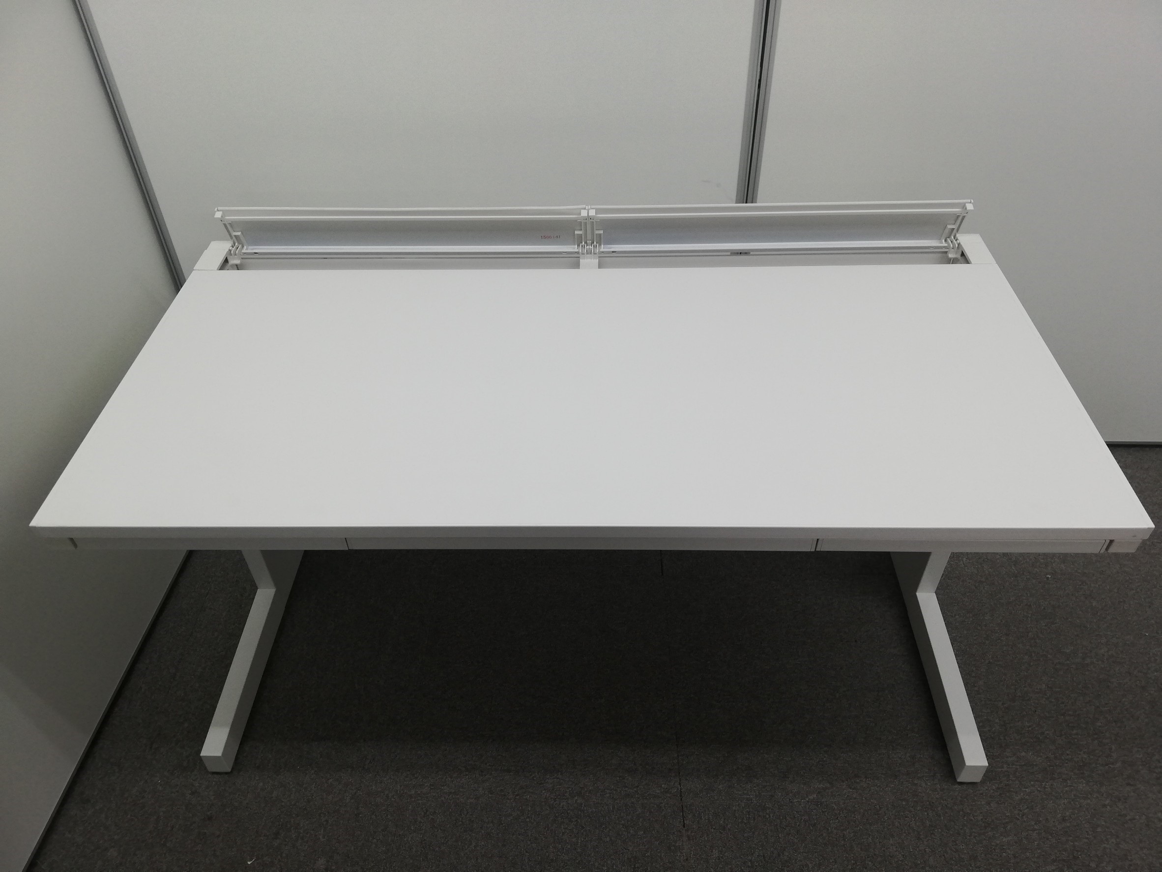平机 内田洋行 スカエナ(SCAENA) 配線:Ktype(開閉式のカバータイプ) ホワイト天板 引き出し付き ゆったりつかえるW1400サイズ