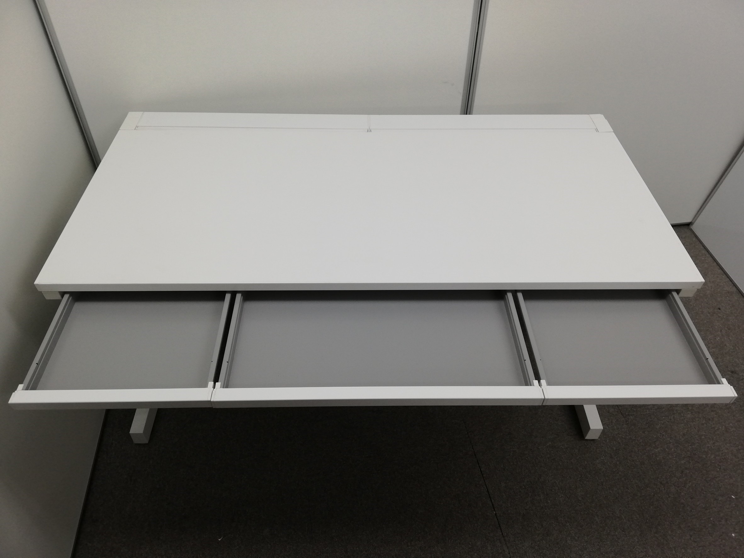 【T8】商品入替のため、残り1台限り】ウチダ製 スカエナ ホワイト 注意※薄型引出し無し Kタイプ/奥一直線配線タイプ W1400サイズ W1400平机!!
