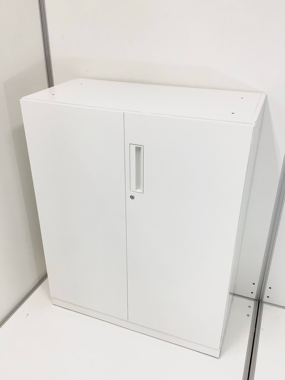 【収納物がひとめで分かる両開き戸タイプ!】■コクヨ(KOKUYO)製 エディア(EDIA)シリーズ 両開き書庫 ローキャビネット H1130㎜ ■天板・ベース付 ■ホワイト ■シリンダー錠