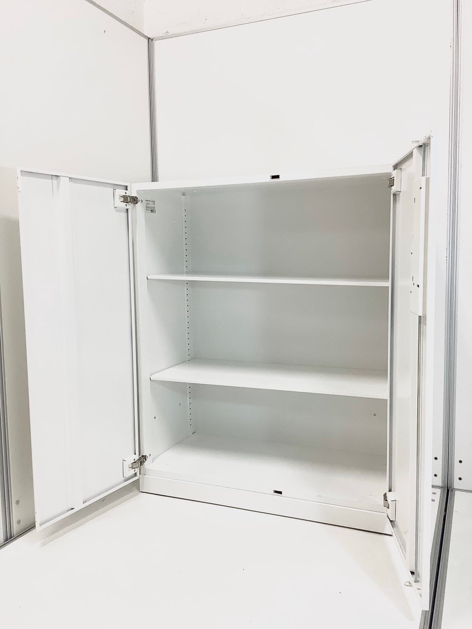 【収納物がひとめで分かる両開き戸タイプ!】■コクヨ(KOKUYO)製 エディア(EDIA)シリーズ 両開き書庫 ローキャビネット H1130㎜ ■天板・ベース付 ■ホワイト ■シリンダー錠【IB】