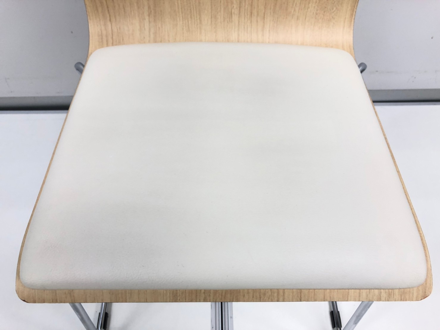 - かなり強い濃い黄ばみ・変色が商品全体にある。(例、座面・背もたれ、脚部等にある。)