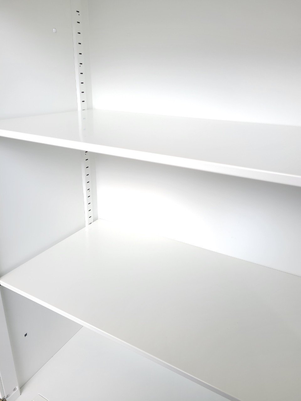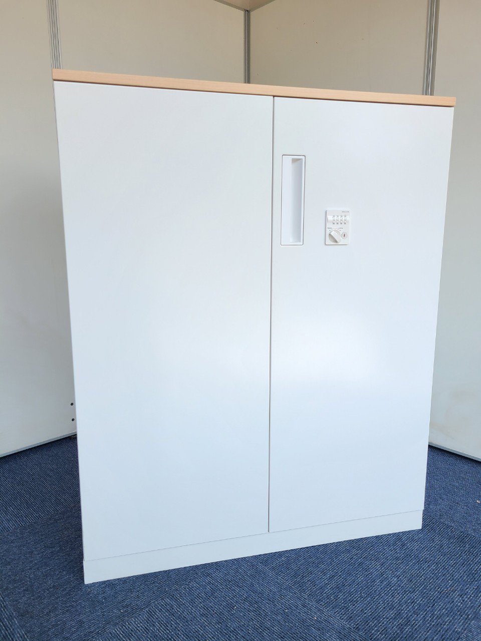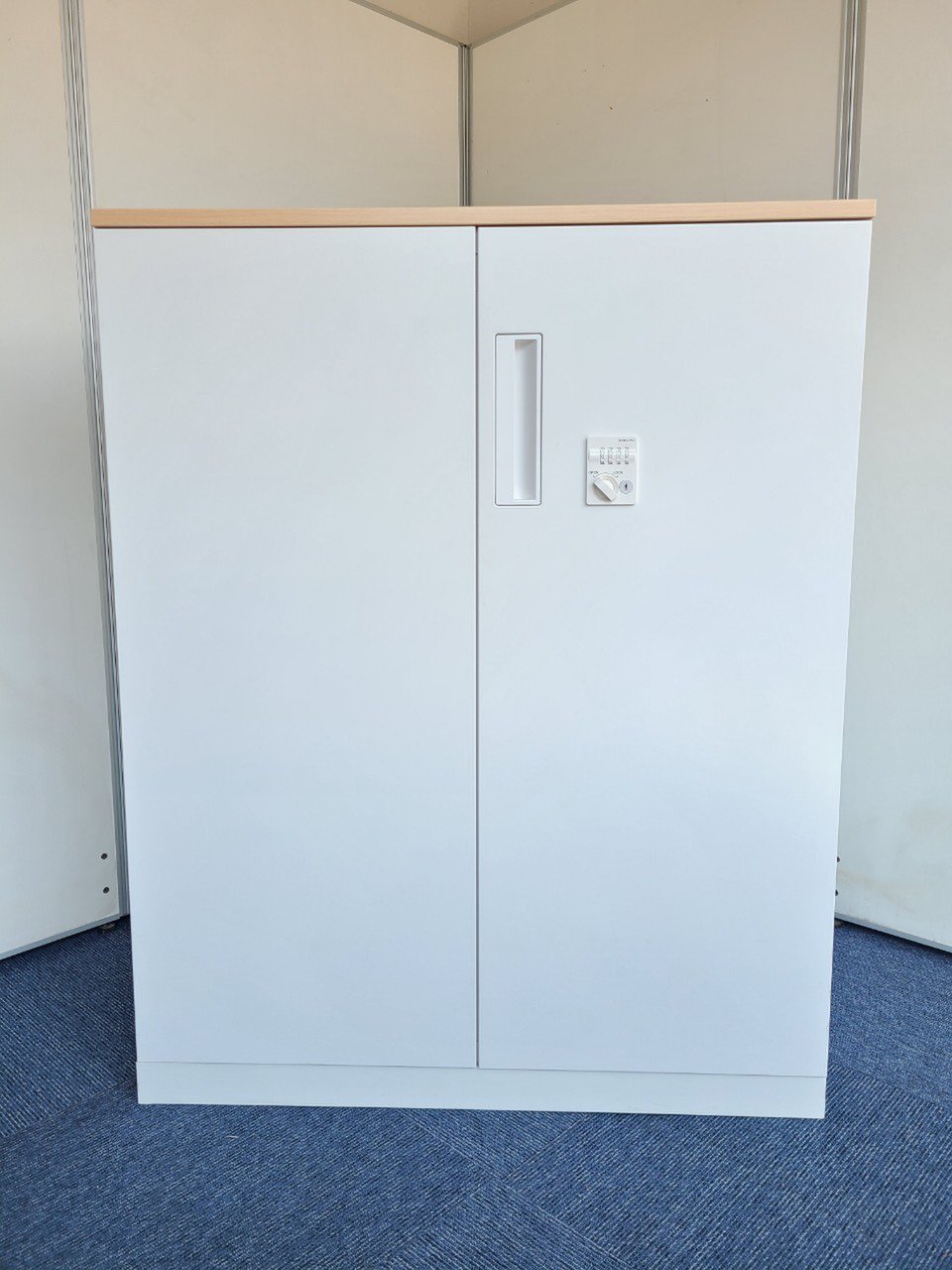 【収納物がひとめで分かる両開き戸タイプ!】■コクヨ(KOKUYO)製 エディア(EDIA)シリーズ 両開き書庫 ローキャビネット H1130㎜ ■天板・ベース付 ■ホワイト ■シリンダー錠