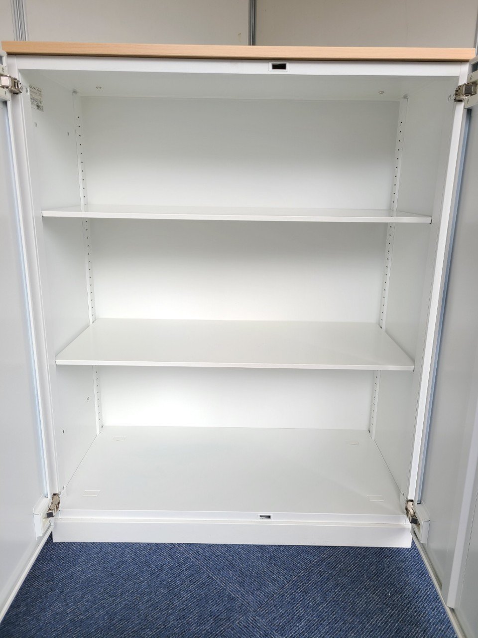 【収納物がひとめで分かる両開き戸タイプ!】■コクヨ(KOKUYO)製 エディア(EDIA)シリーズ 両開き書庫 ローキャビネット H1130㎜ ■天板・ベース付 ■ホワイト ■シリンダー錠【IB】
