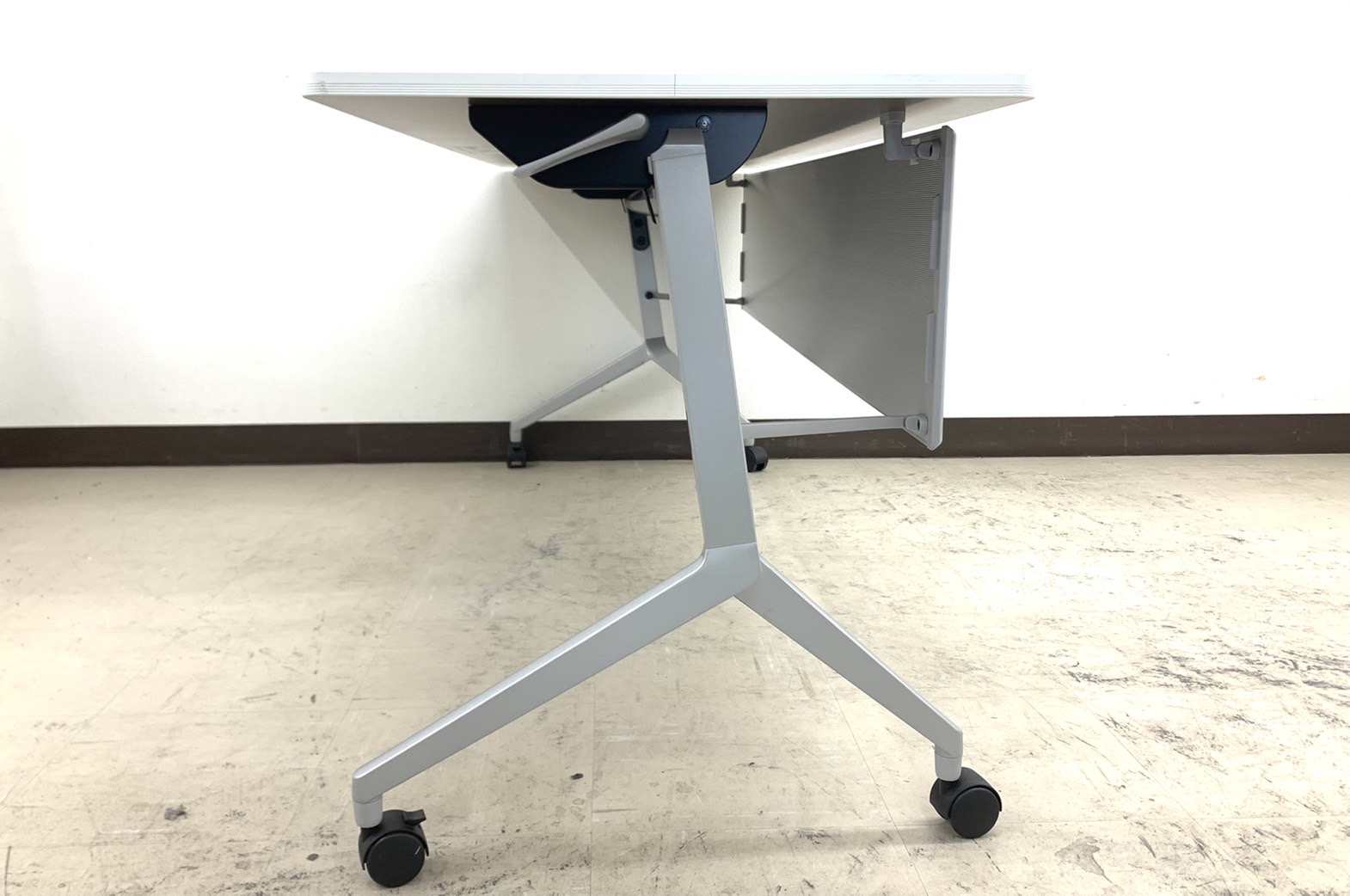 【折りたたみ収納が秀逸!スタイリッシュなデザインで高品質!】■コクヨ(KOKUYO)製 リーフラインシリーズ サイドスタックテーブル フラップタイプ W1200×D450㎜ ■キャスター・幕板付 ■ホワイト