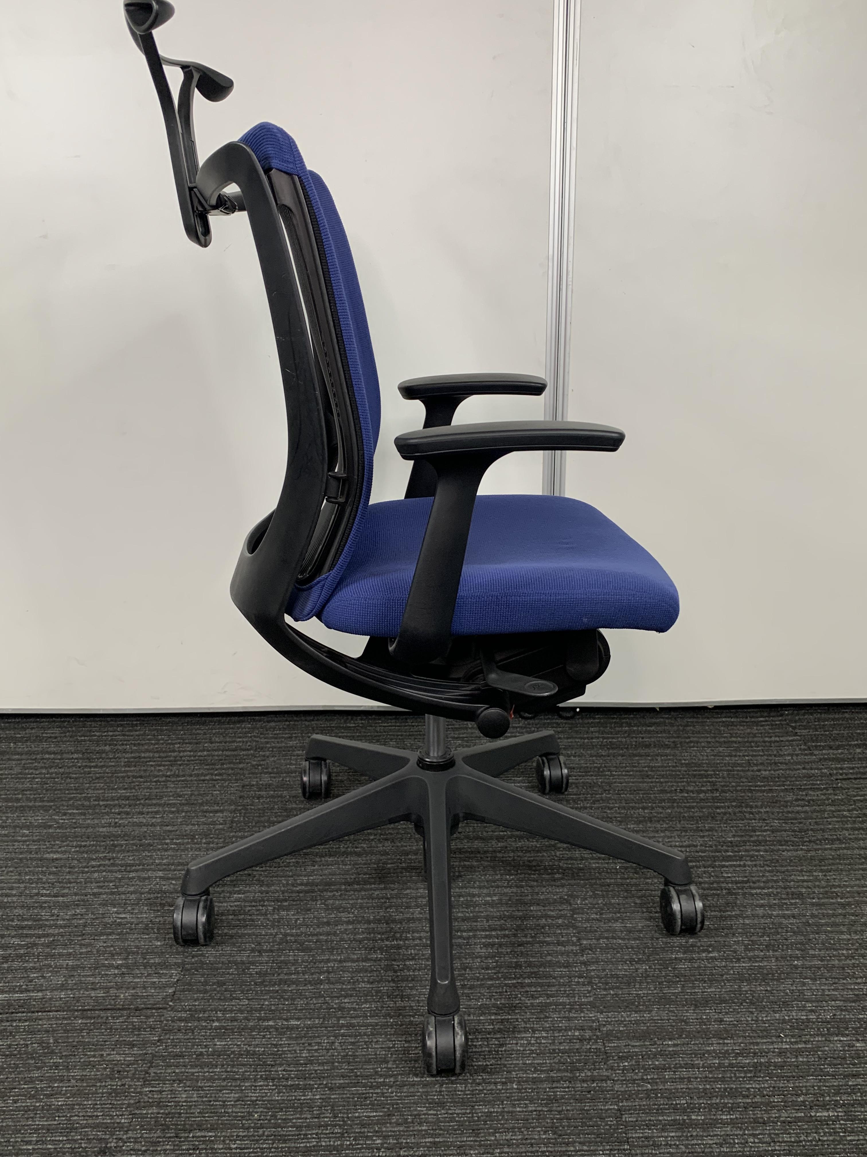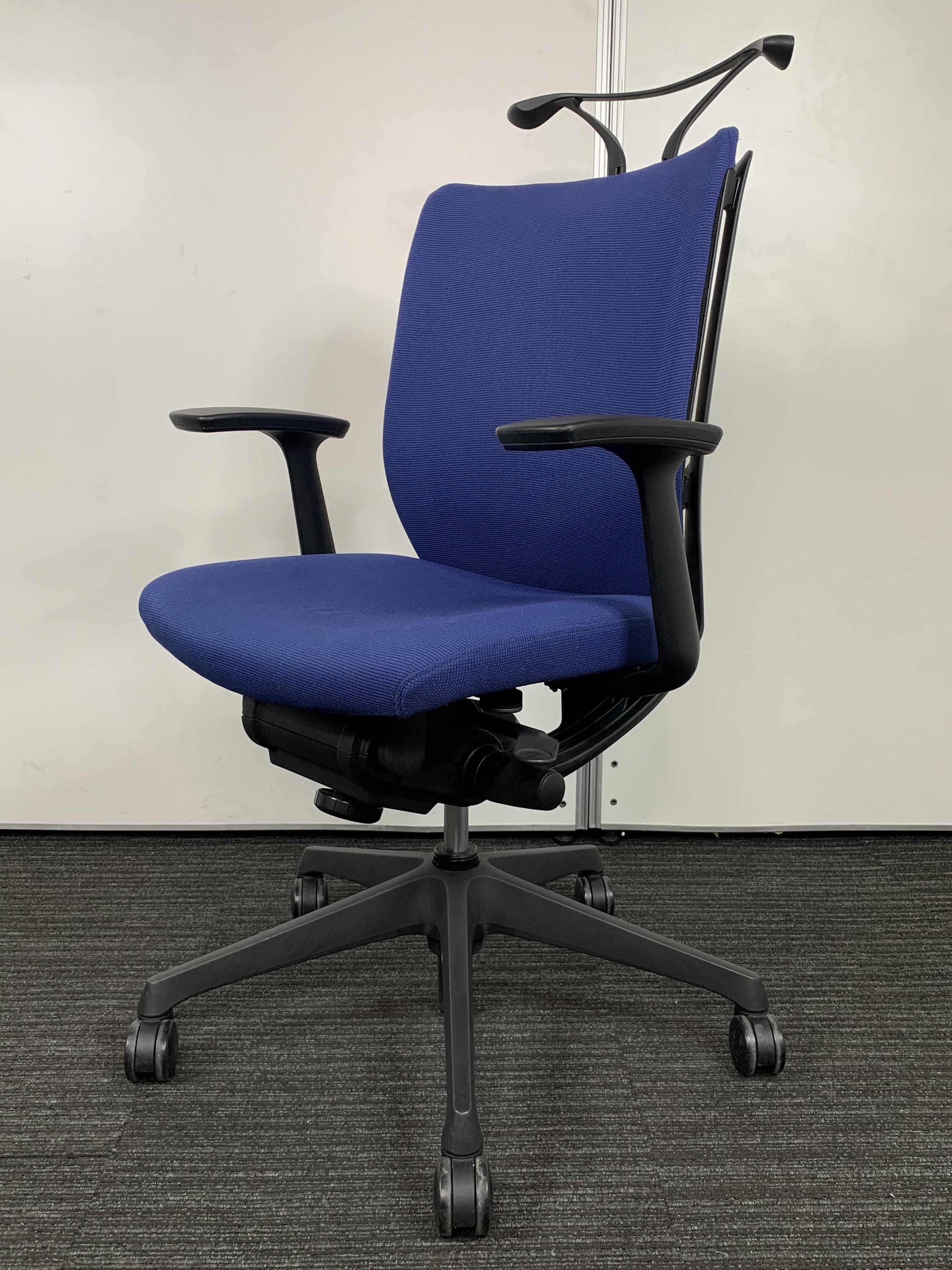 オカムラ ヴィスコンテ ローバックモデル アジャストアーム(可動肘)ブルー 背クッション スタンダードタイプ