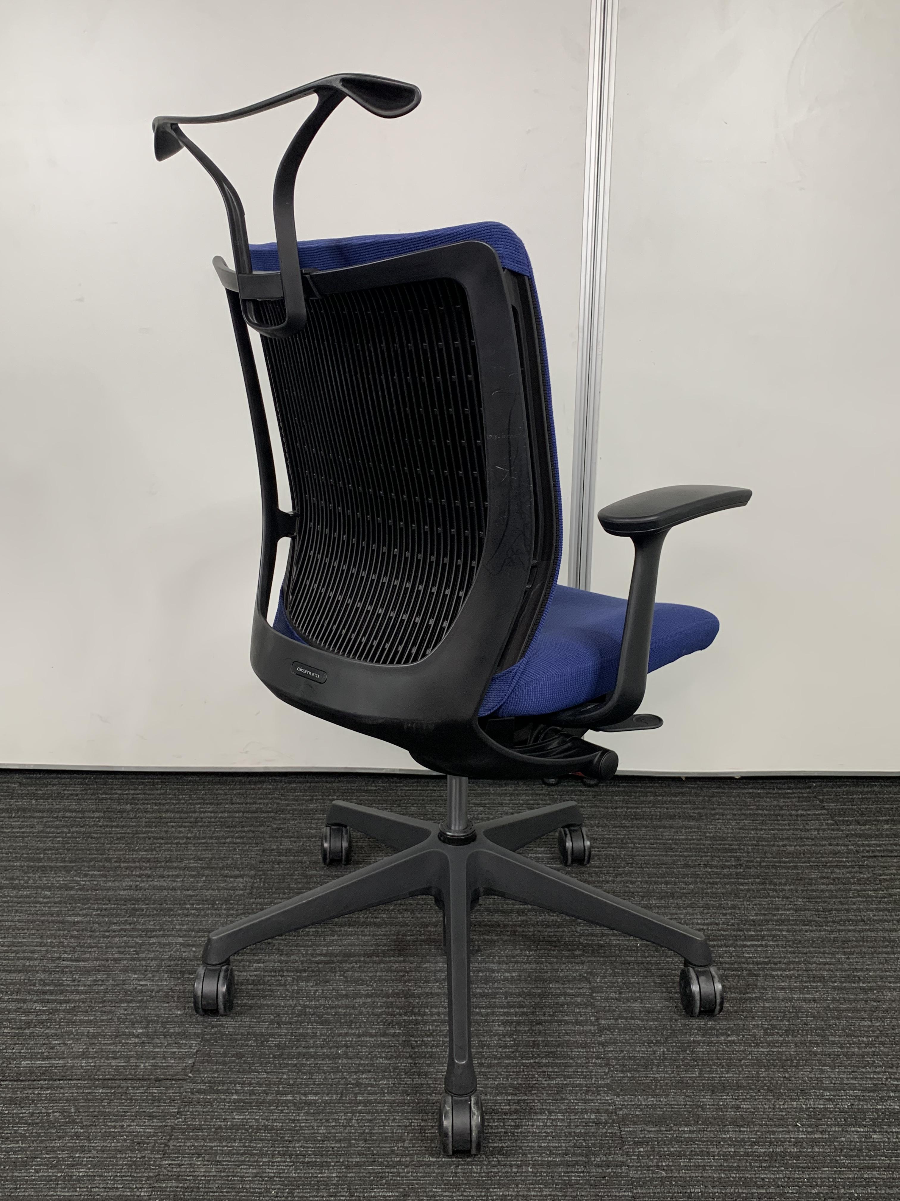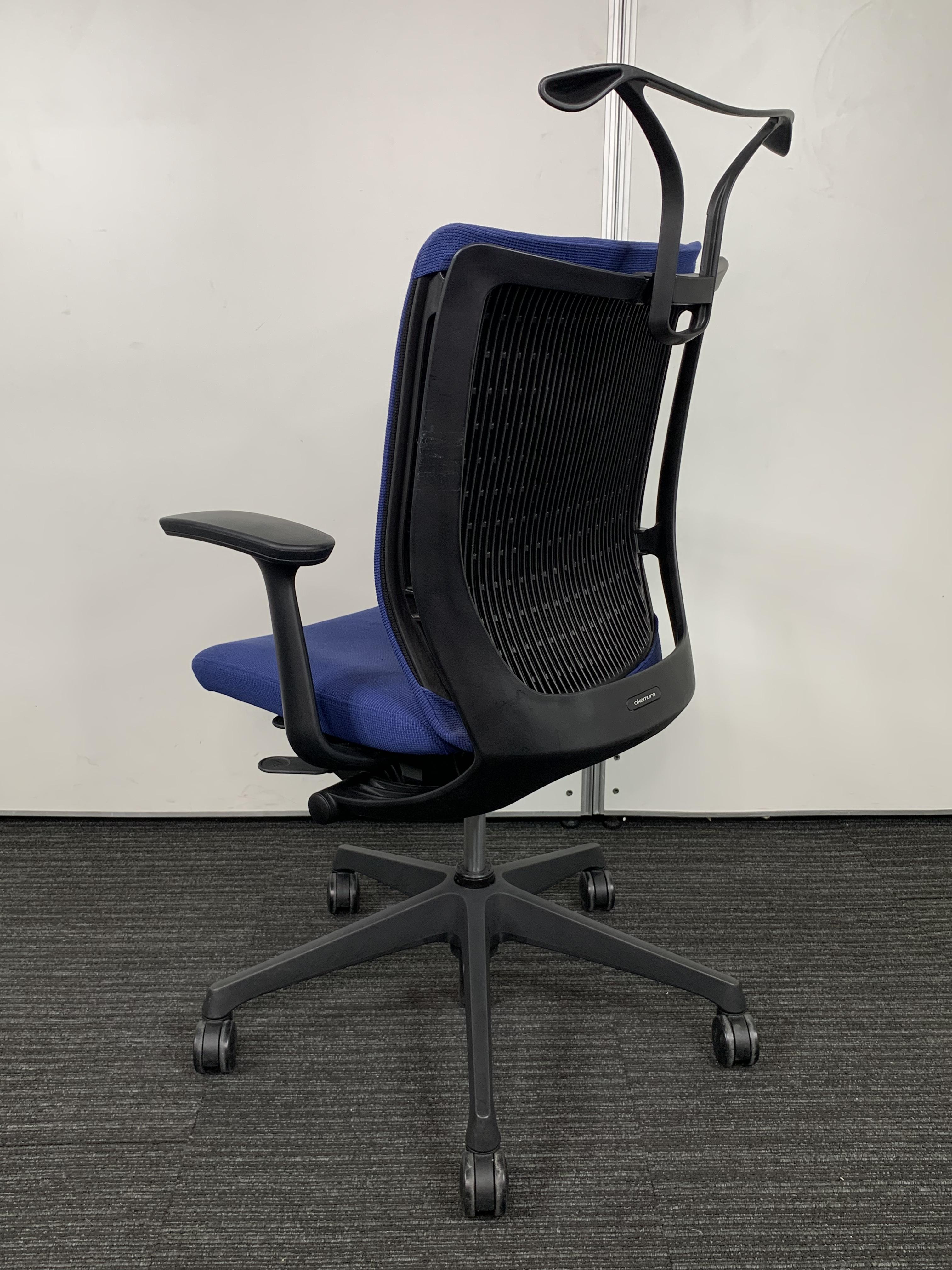 【2020年製】オカムラ ヴィスコンテ ローバックモデル デザインアーム(固定肘) ブルー 背クッション スタンダードタイプ コートハンガー付き