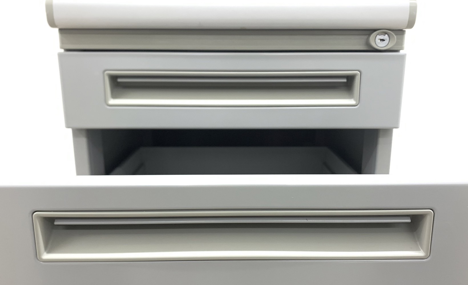 - 一部不具合ありその脇机・ワゴンの本来の効用を果たすための機能以外の一部が使用不可な状態。(例、引出が開閉しづらい、 キャスターロック機能使用不可、ラッチ不良 等がある。)