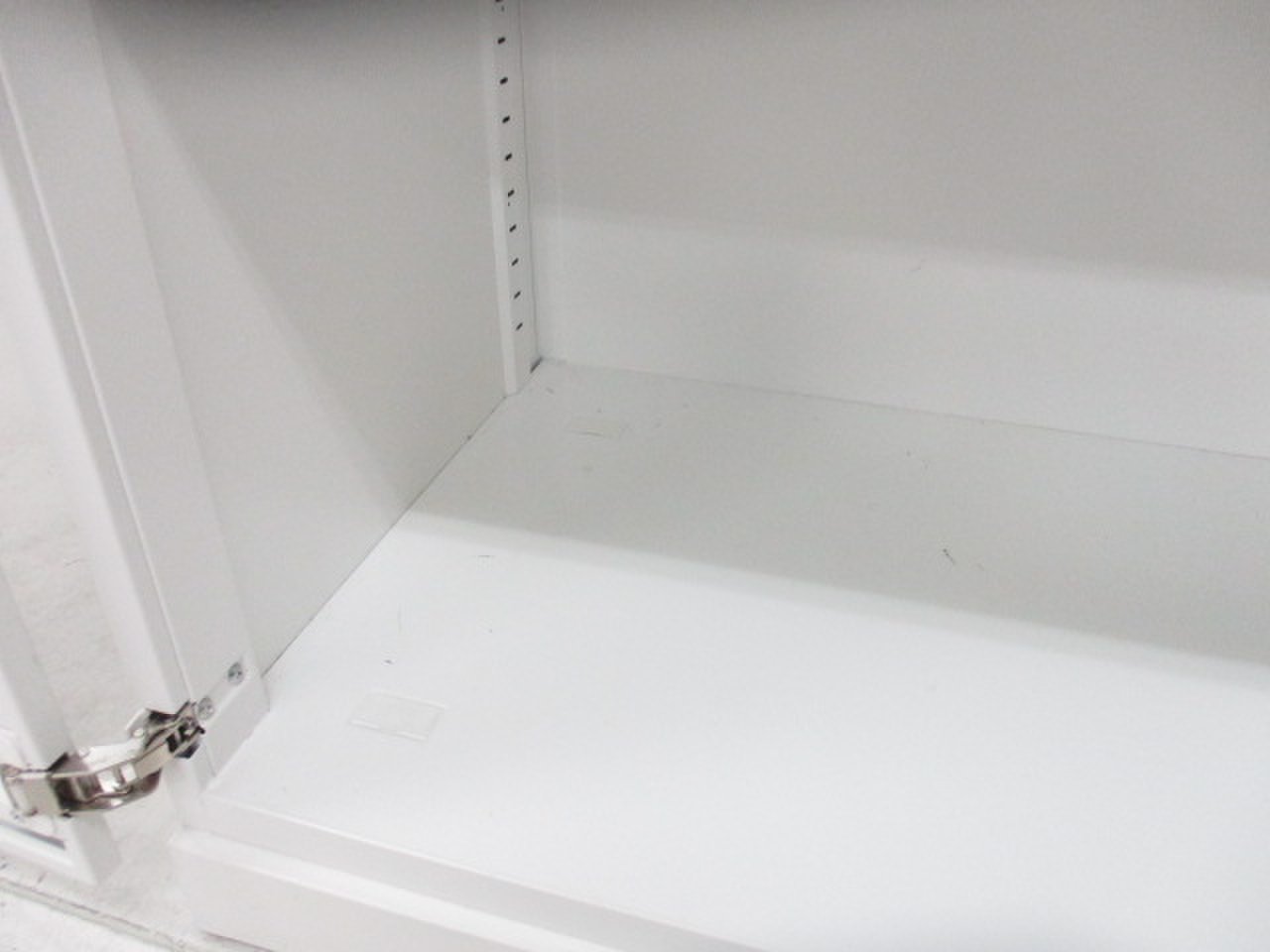 ※訳アリのためお安く!【収納物がひとめで分かる両開き戸タイプのホワイト書庫!】■コクヨ(KOKUYO)製 エディア(EDIA)シリーズ 両開き書庫 ローキャビネット H1120㎜ ■天板・ベース付き ■ホワイト ■シリンダー錠 ※日焼け有価格!【K1】
