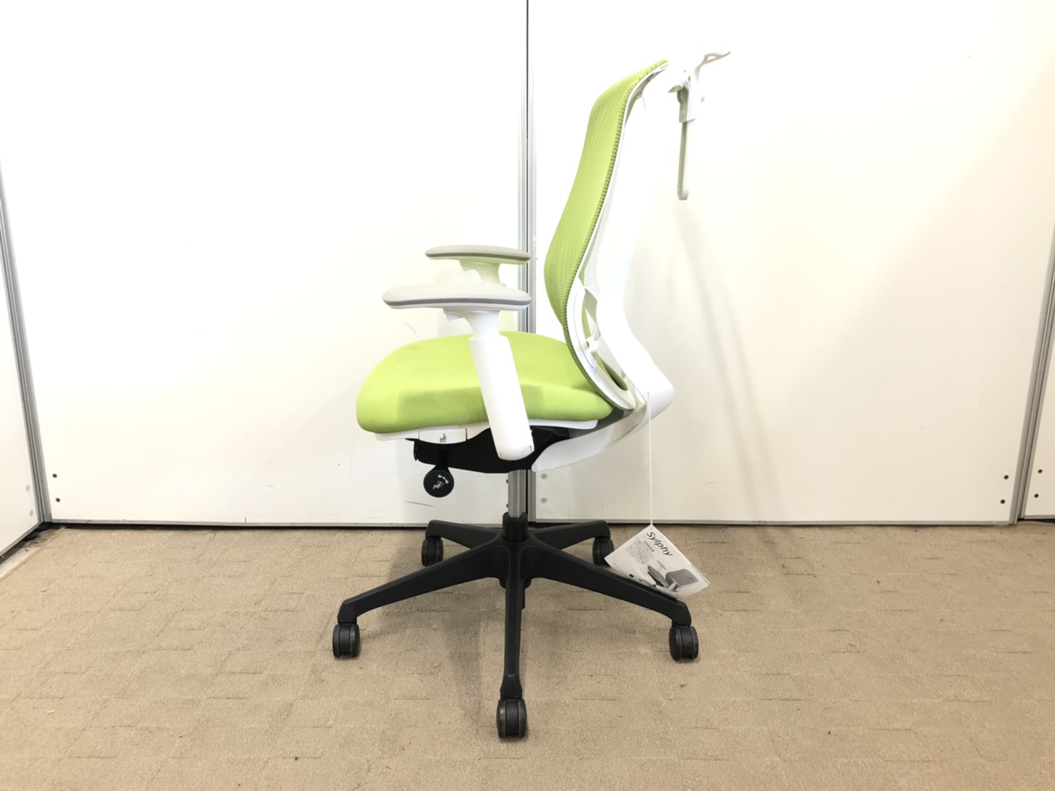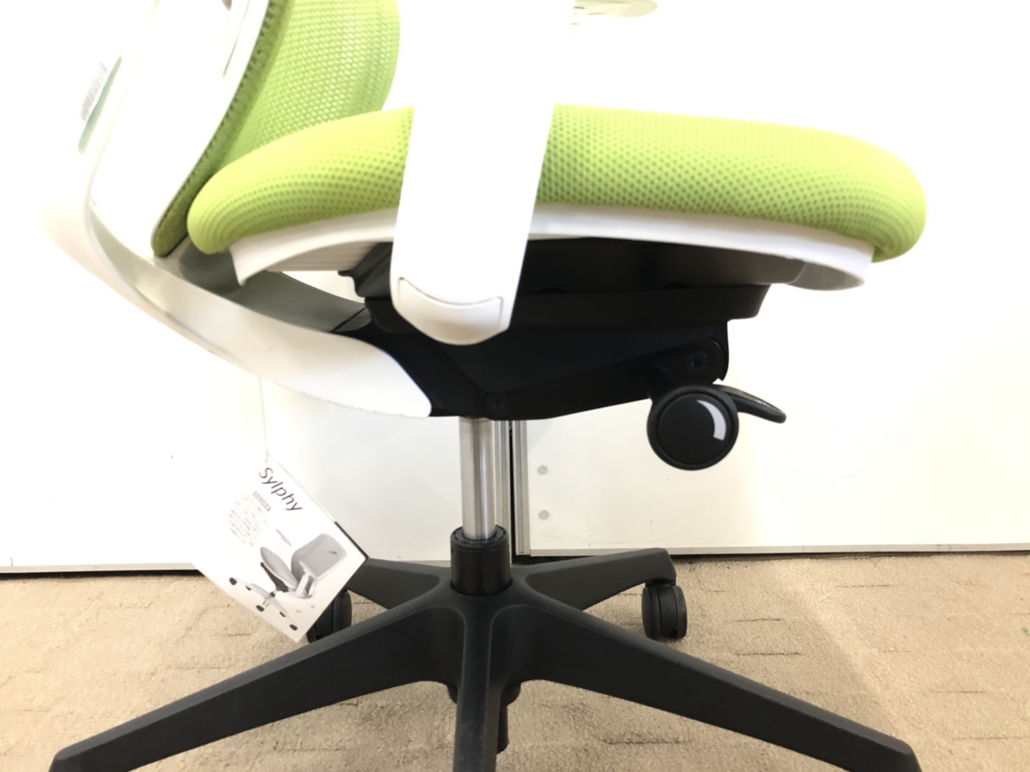 【前傾チルト機能付き!オカムラ製品で最も人気を集める高機能メッシュチェア!】■オカムラ(okamura)製 シルフィ(Sylphy)チェア ハイバック ■可動肘・ハンガー付き ■ライムグリーン × ホワイトシェル