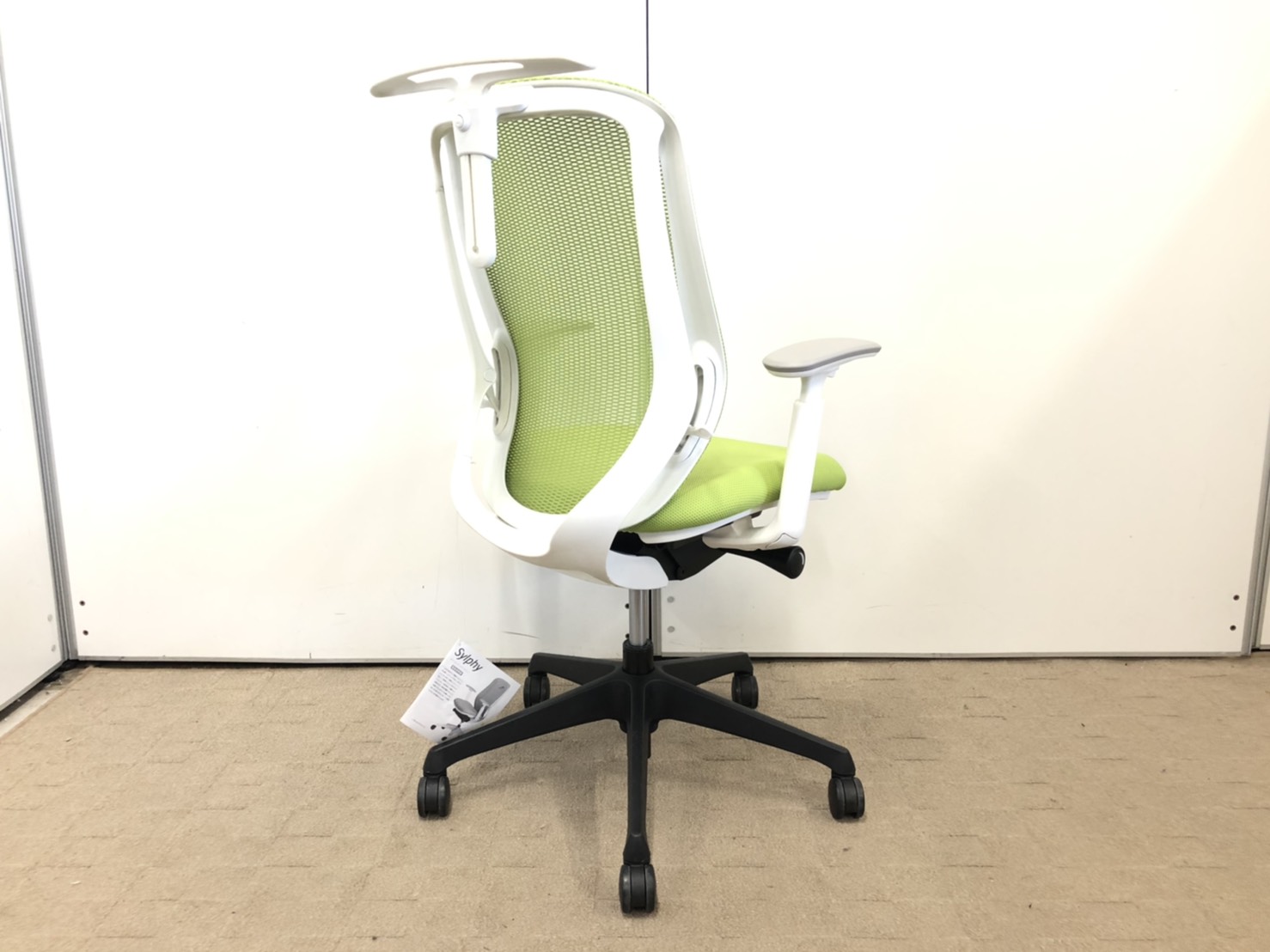【前傾チルト機能付き!オカムラ製品で最も人気を集める高機能メッシュチェア!】■オカムラ(okamura)製 シルフィ(Sylphy)チェア ハイバック 肘付き ■可動肘 ■ライムグリーン × ホワイトシェル【状態良好品!】
