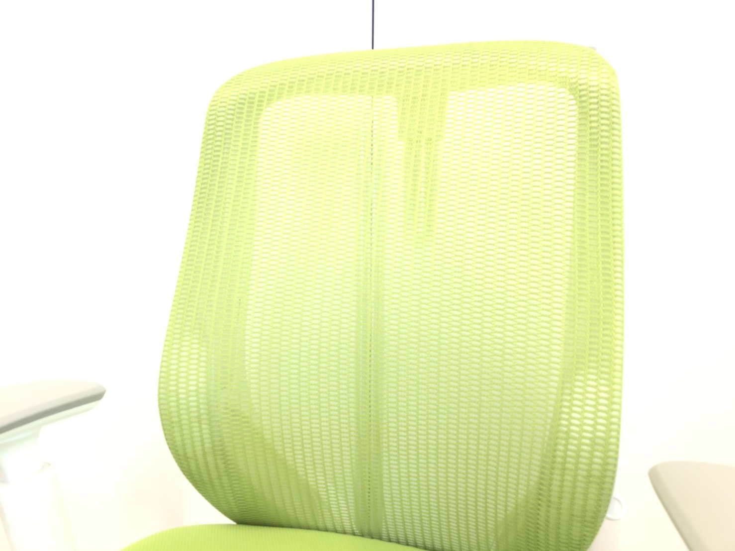三次元曲面が身体にフィット!前傾チルト機能付き大人気メッシュチェア!清潔感と爽快感のある明るいグリーン×ホワイトフレーム仕様! ■オカムラ/シルフィーチェア(Sylphy)/ライムグリーン 肘付き ハイバック 背面メッシュ 可動肘