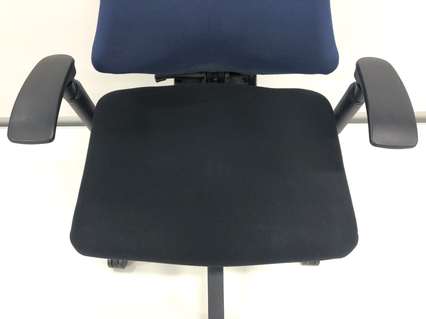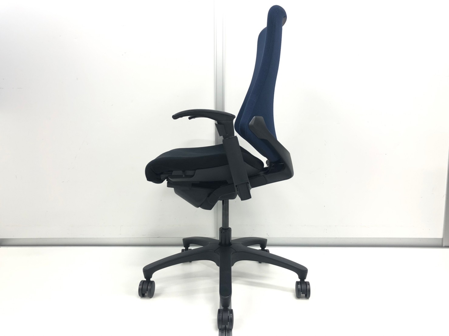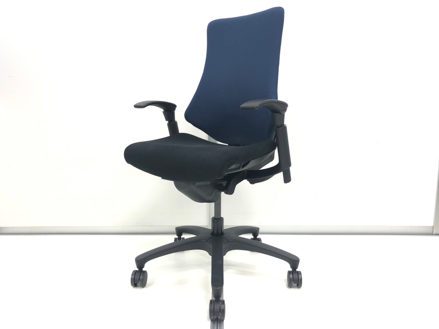 【関西倉庫在庫品】■イトーキ(ITOKI)製 エフチェア 肘付ハイバック クロスバックタイプ ■背面:ネイビーブルー 座面:ブラック ■固定肘 ■ブラックシェル 【姿勢の変化にフレキシブルに対応!座り心地も抜群な高機能チェア!】