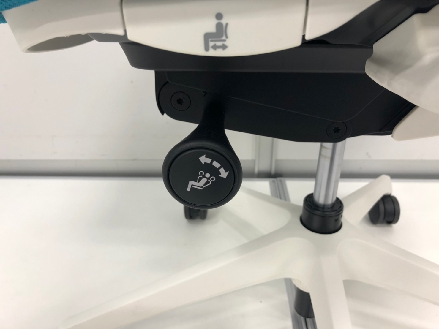 - 座面左下のダイヤルでリクライニングの固定と解除が行えます。 前傾ポジションをとることも可能です。