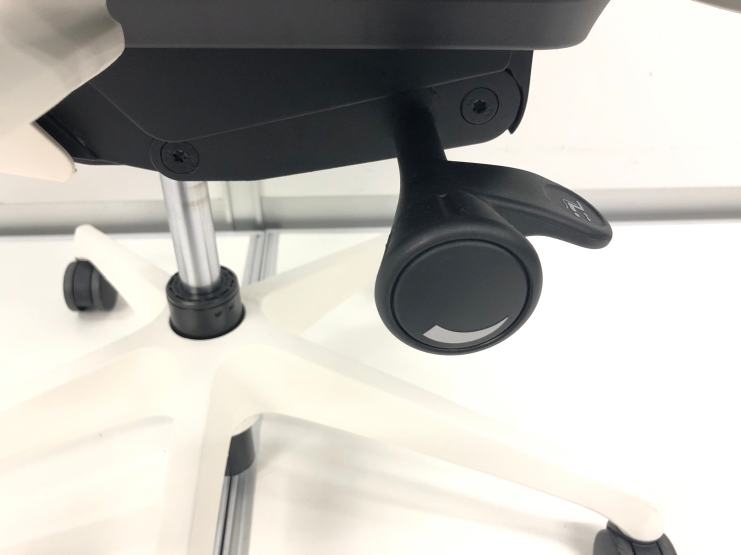 - 座面右下のダイヤル操作で、リクライニングの強弱調整が行えます。これまでのダイヤル式よりも、少ない回転数で、最弱?最強の調整が可能です。