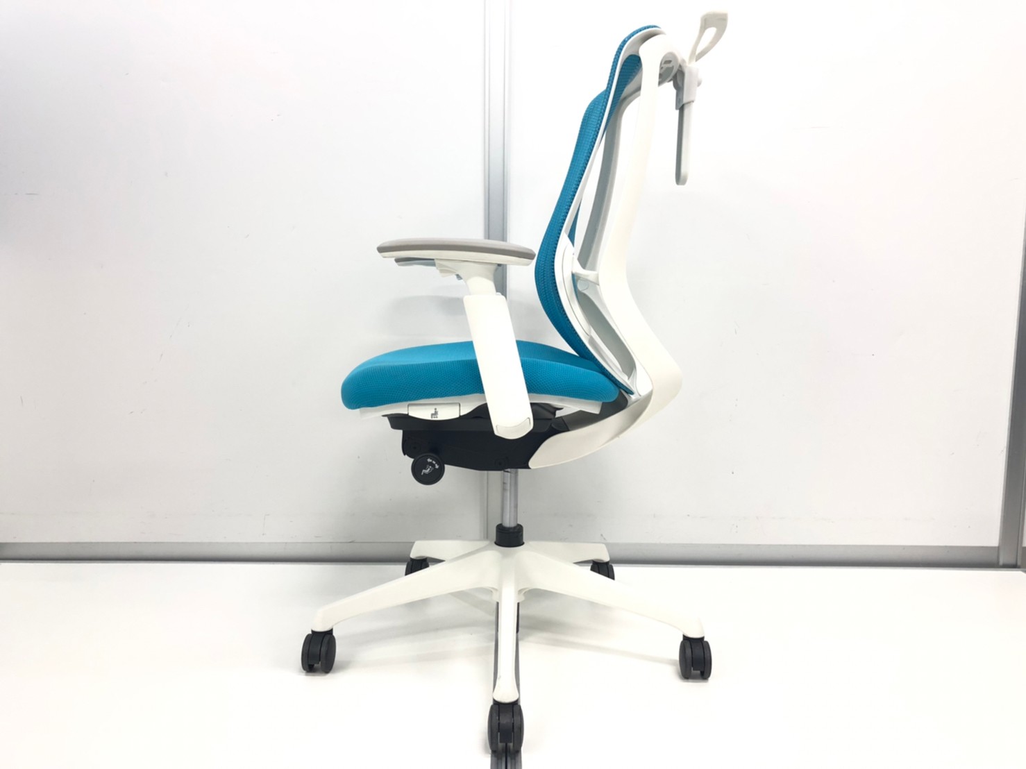 【今人気のワークチェア!】働く姿勢を変えるオフィスチェアが入荷!前傾機能付きの新感覚のオフィスシーティング!包み込まれるような快適な座り心地! ■オカムラ/シルフィーチェア/ブルーグリーン コートハンガー付