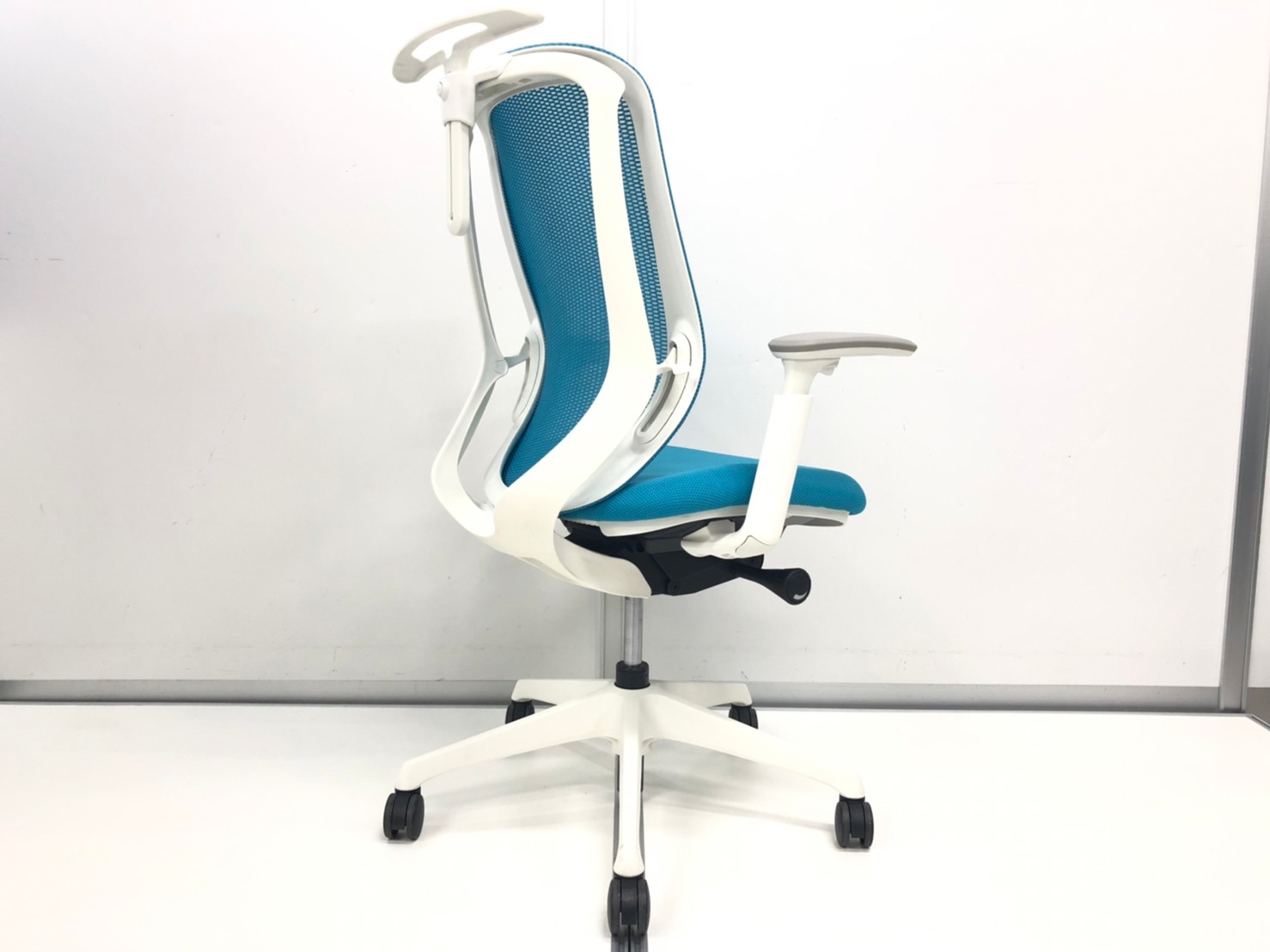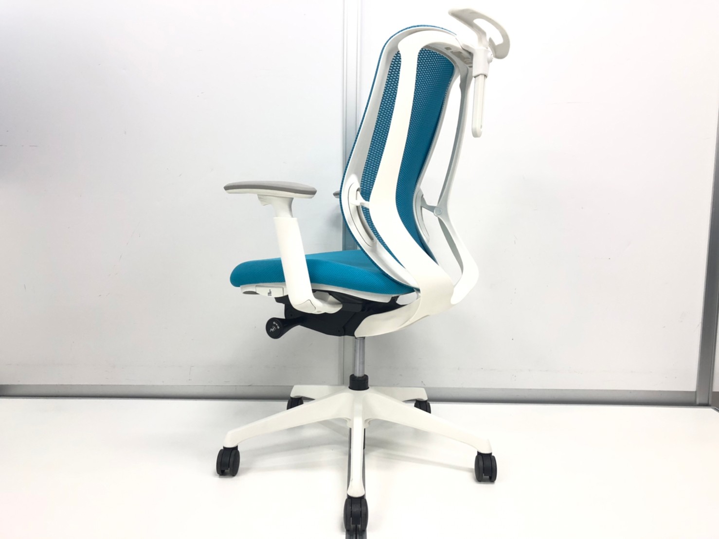 《現物写真だから安心!》オカムラ製の人気オフィスチェア【シルフィーメッシュ/可動肘/ヘッドレスト付き/ブルーグリーン】が先着1名様ご案内可能です!
