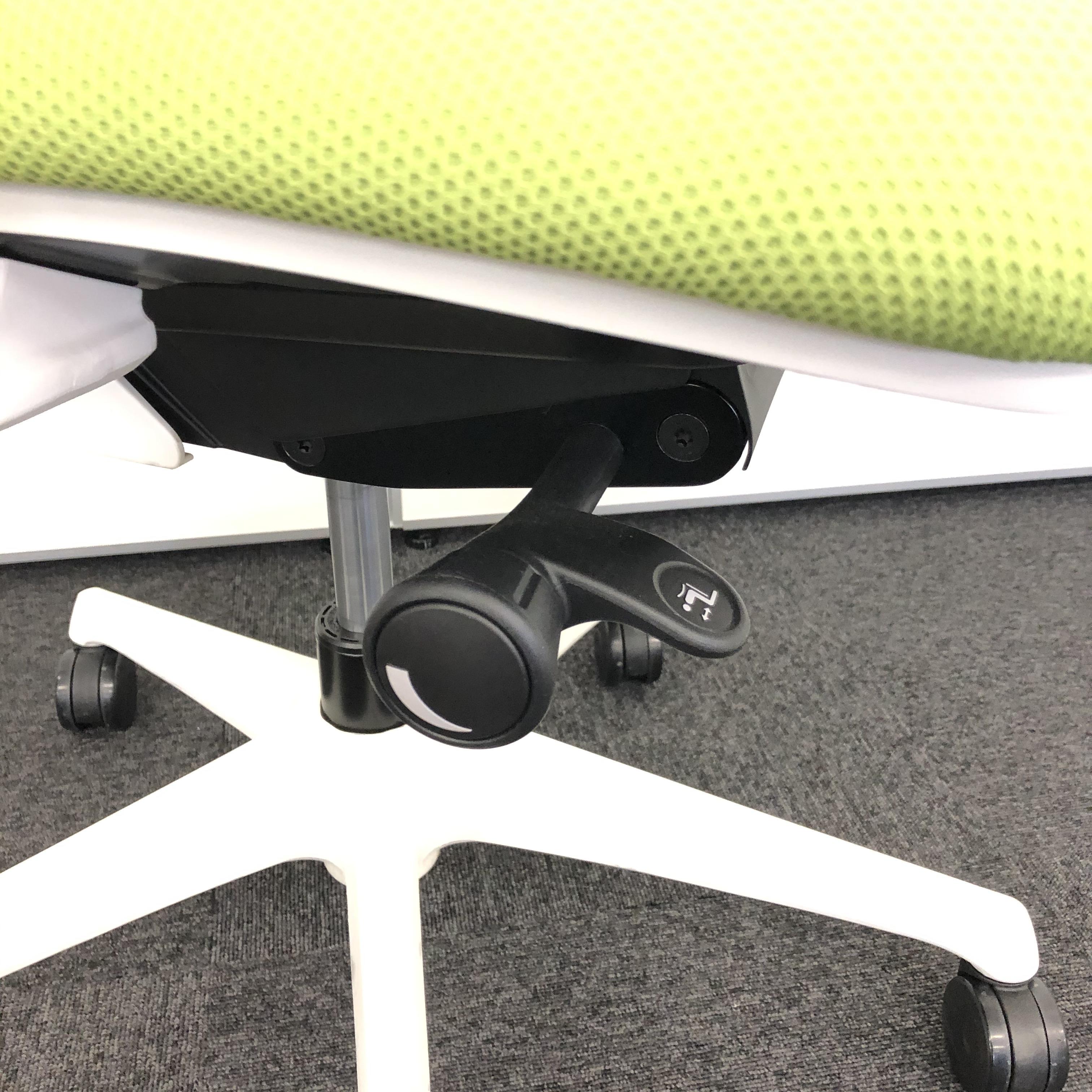 - 座面右下のダイヤル操作で、リクライニングの強弱調整が行えます。これまでのダイヤル式よりも、少ない回転数で、最弱?最強の調整が可能です。