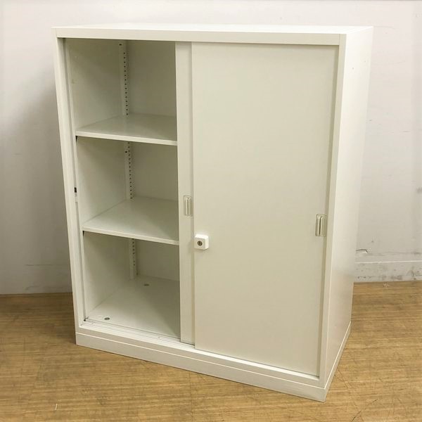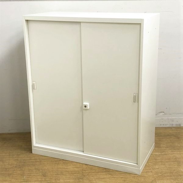 【2台限り】引き戸書庫 鍵付き ホワイト オカムラ レクトライン ベース付き- 名古屋千種店