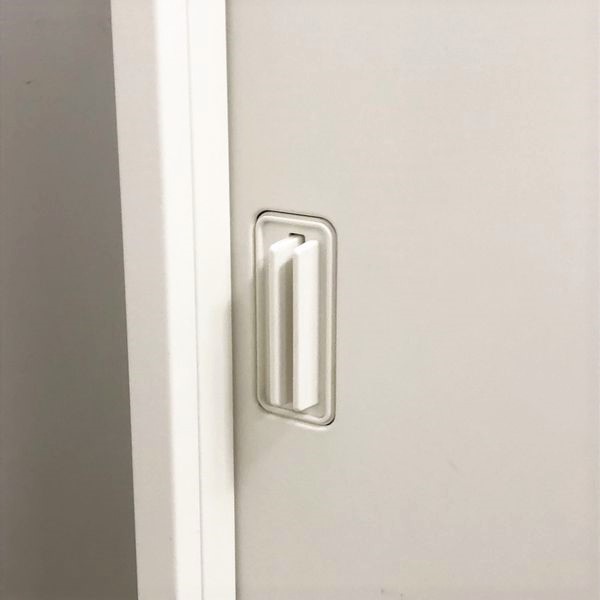2枚引き戸書庫 オカムラ レクトライン 鍵付き シリンダー錠 ホワイト 天板無し スライド式の扉のため導線を邪魔しません