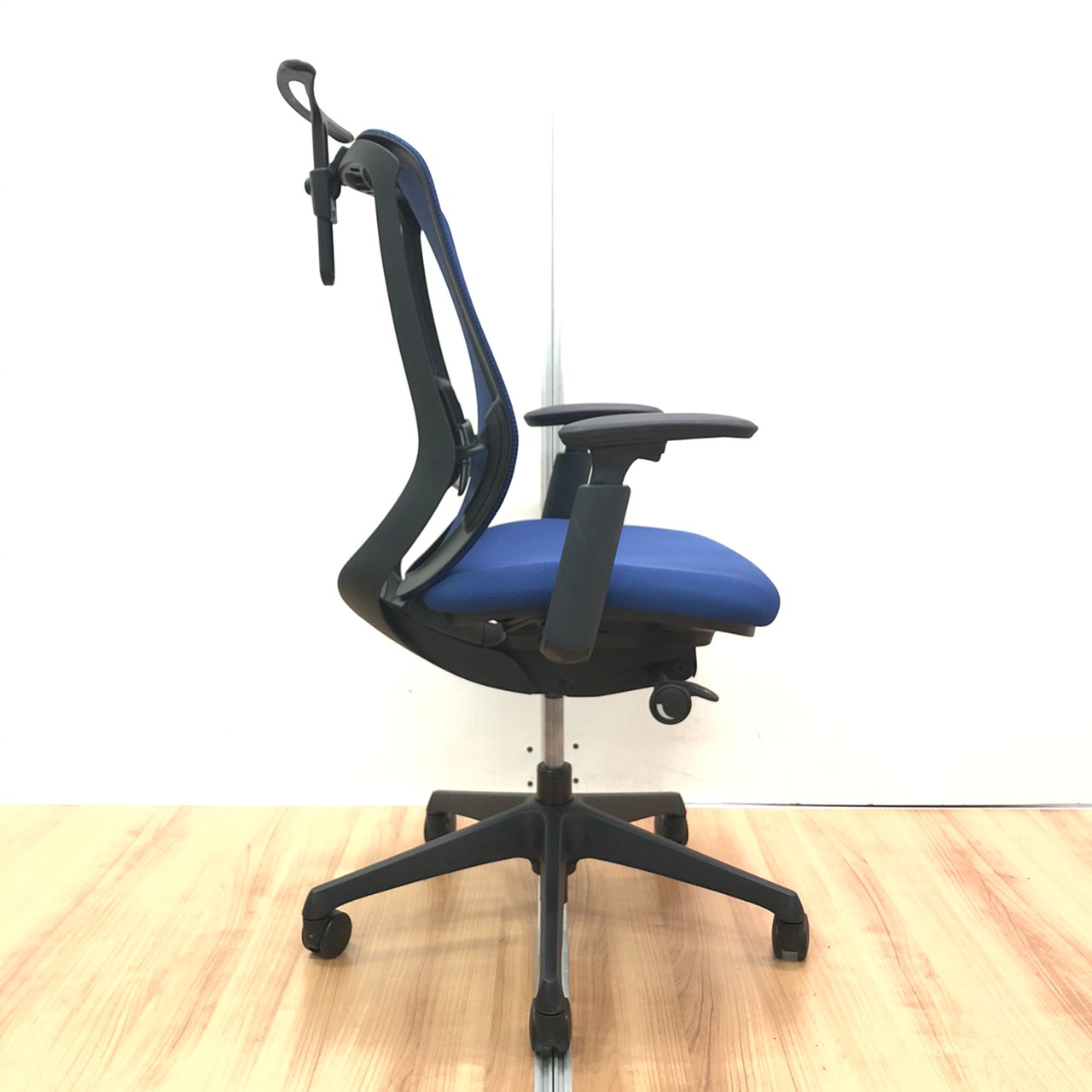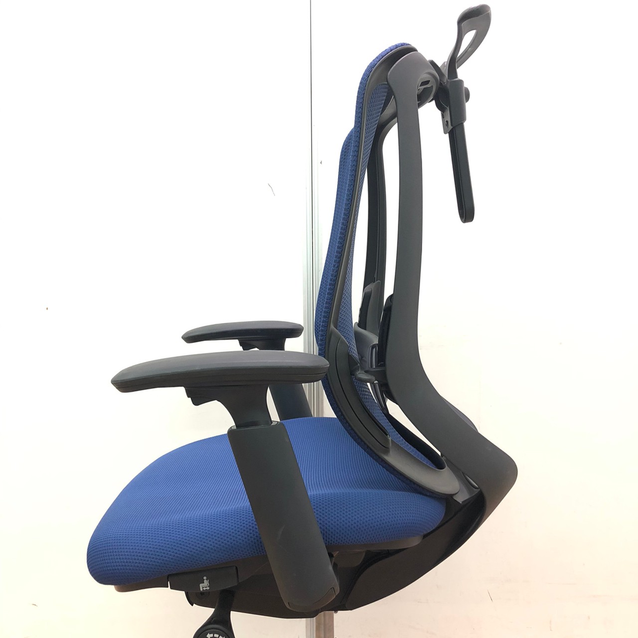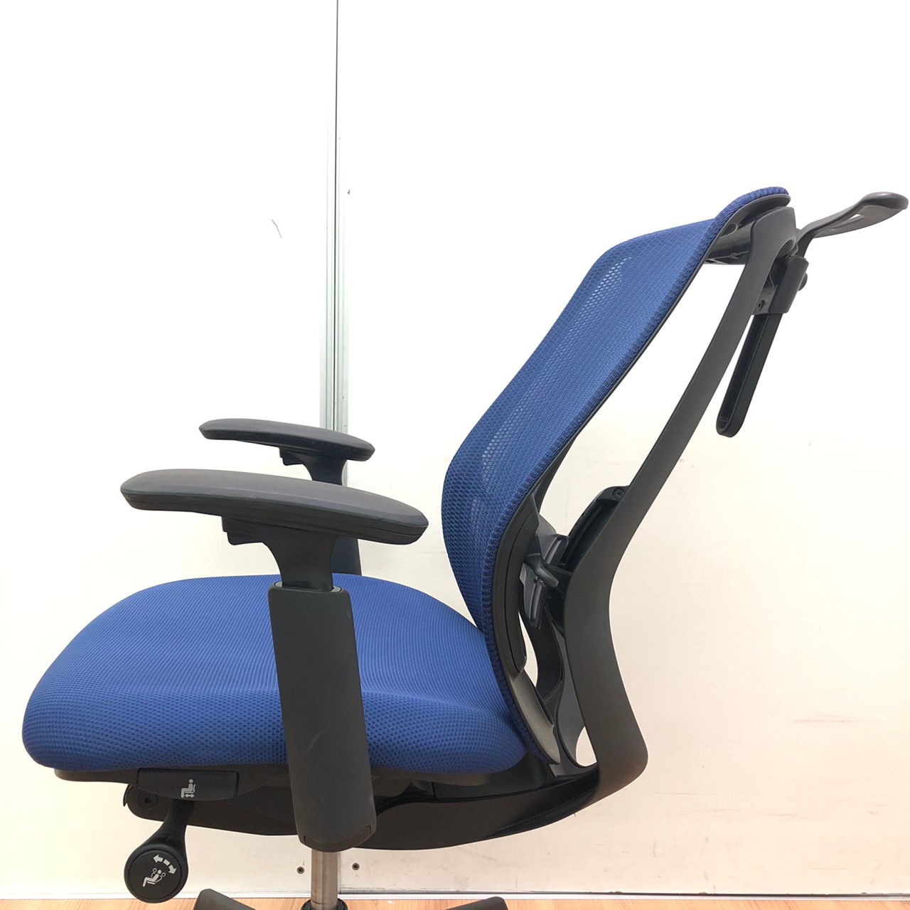 【訳アリ品】【三次元曲面が身体にフィット!前傾チルト機能付き大人気メッシュチェア!】■オカムラ(okamura)製 シルフィーチェア(Sylphy) 肘付きハイバック ■背面メッシュ ■可動肘 ■ブルー×ブラックシェル