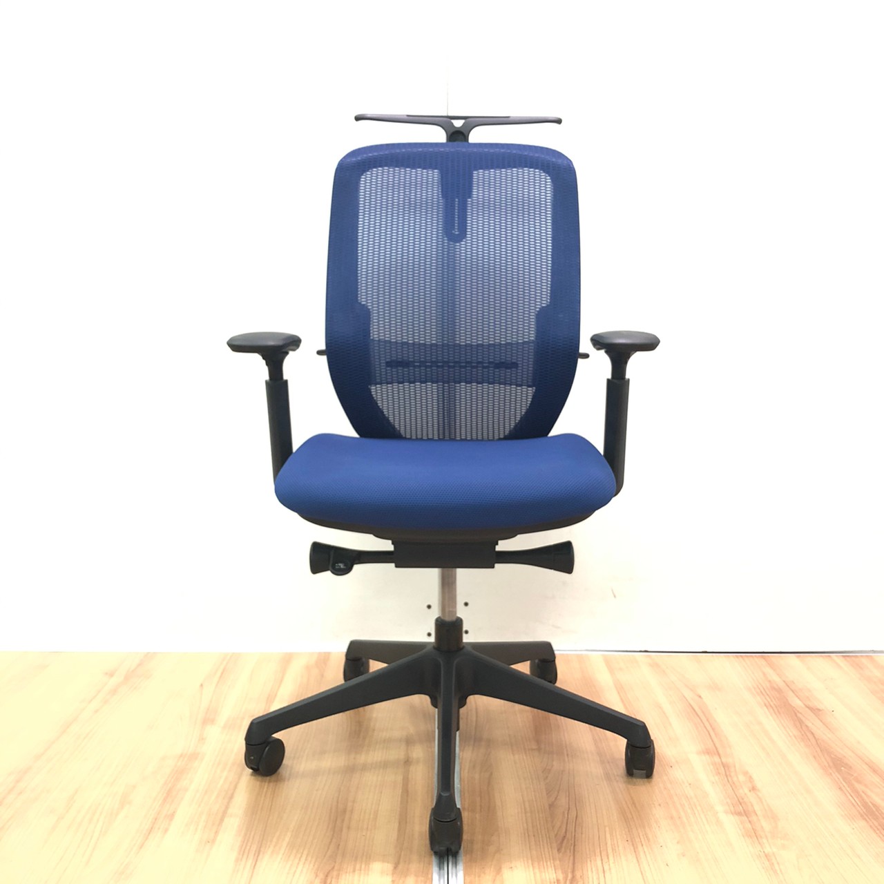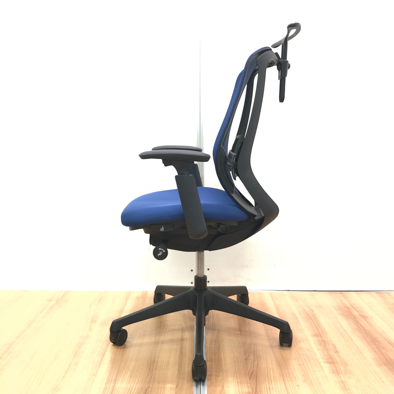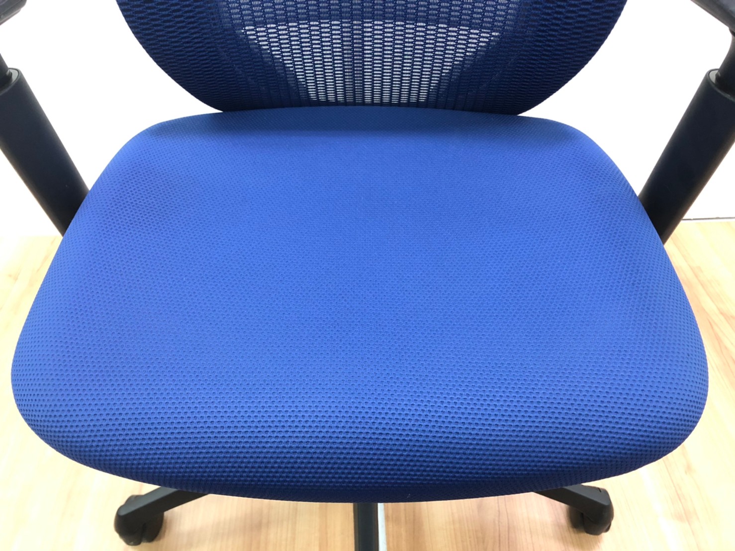 【訳アリ品】【三次元曲面が身体にフィット!前傾チルト機能付き大人気メッシュチェア!】■オカムラ(okamura)製 シルフィーチェア(Sylphy) 肘付きハイバック ■背面メッシュ ■可動肘 ■ブルー×ブラックシェル